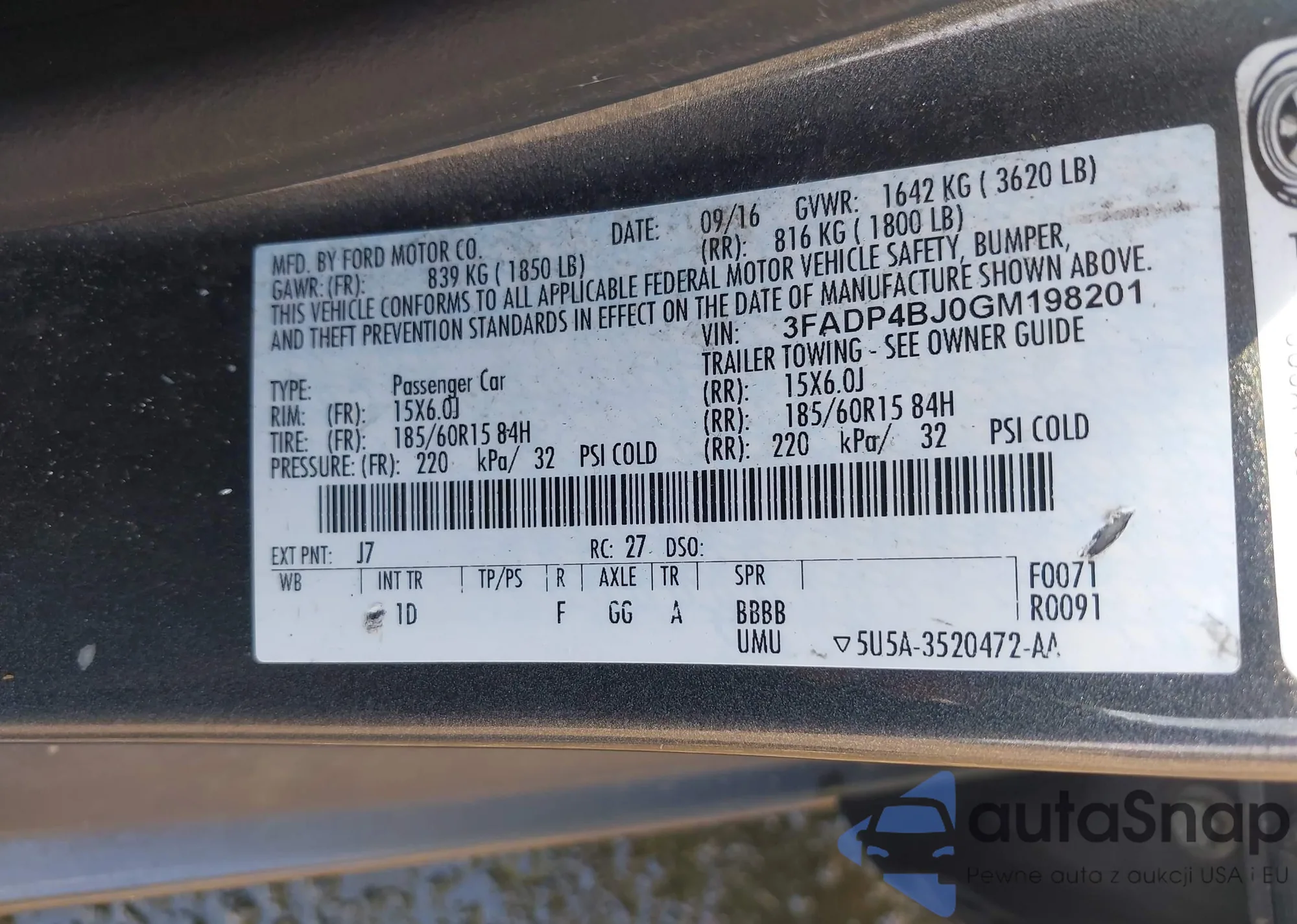 LOT: 43238942 VIN: 3FADP4BJ0GM198201