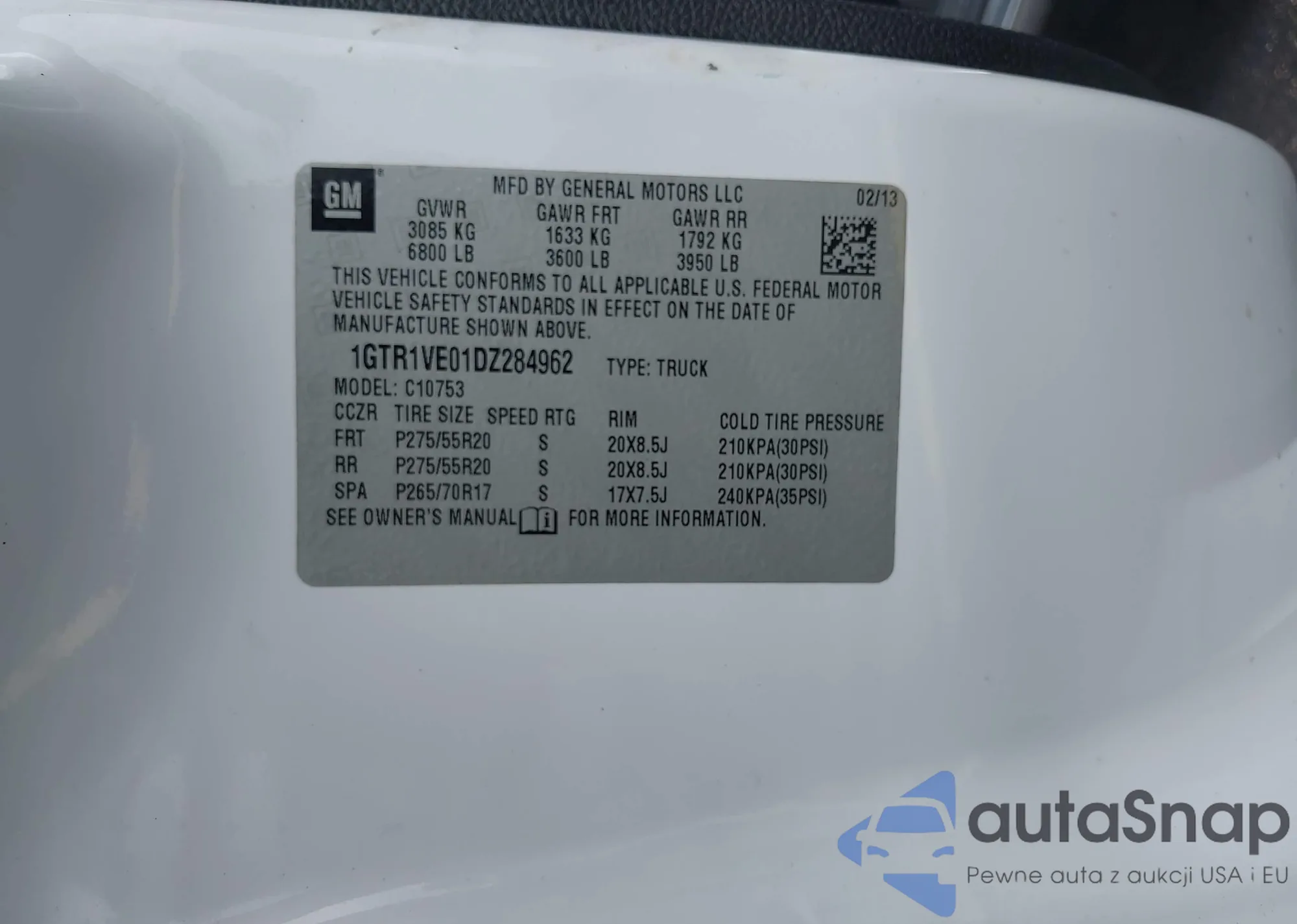 • VIN 1GTR1VE01DZ284962