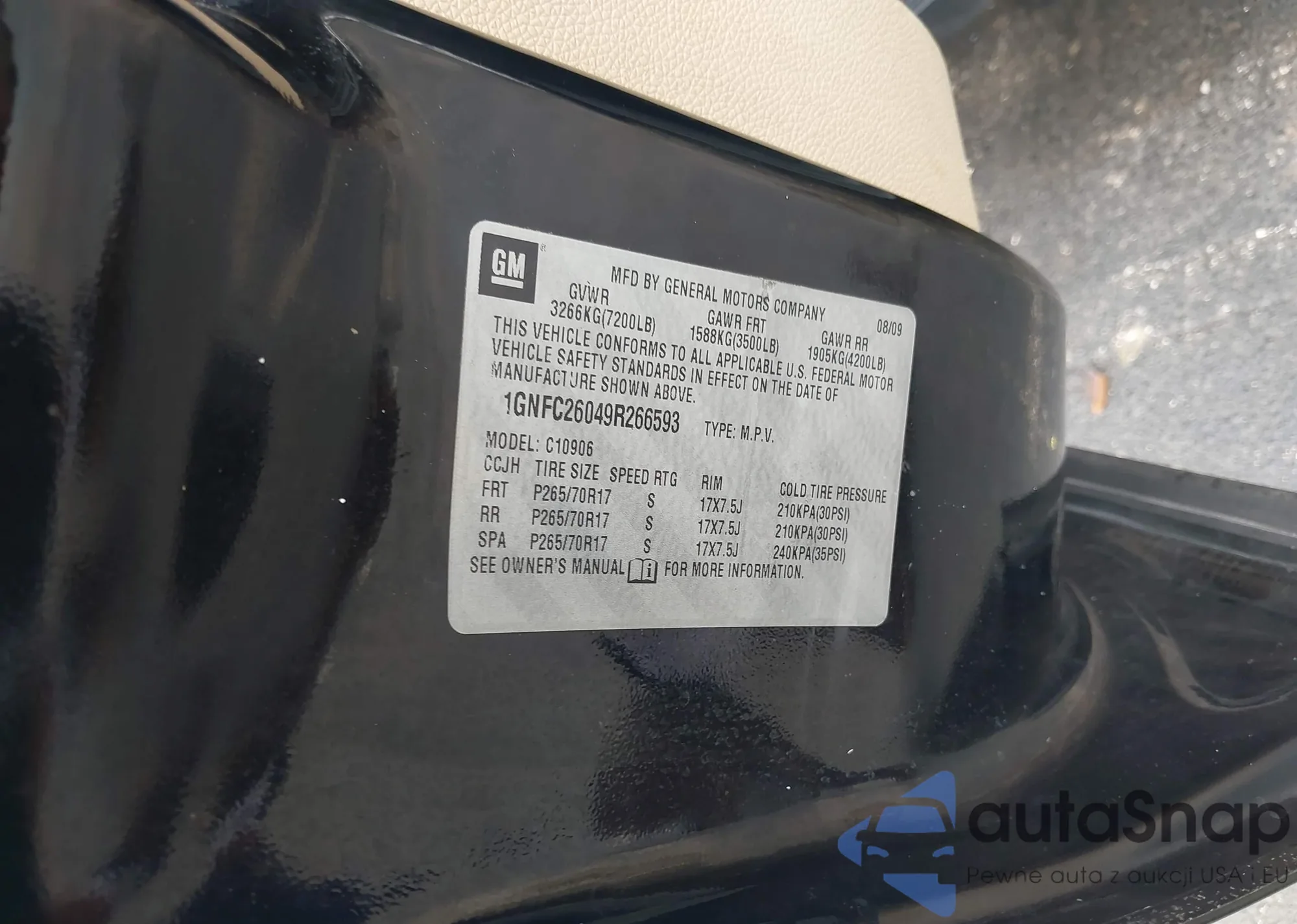 LOT: 43256452 VIN: 1GNFC26049R266593