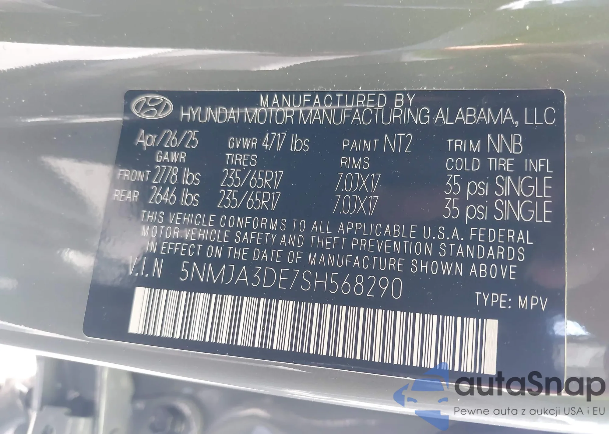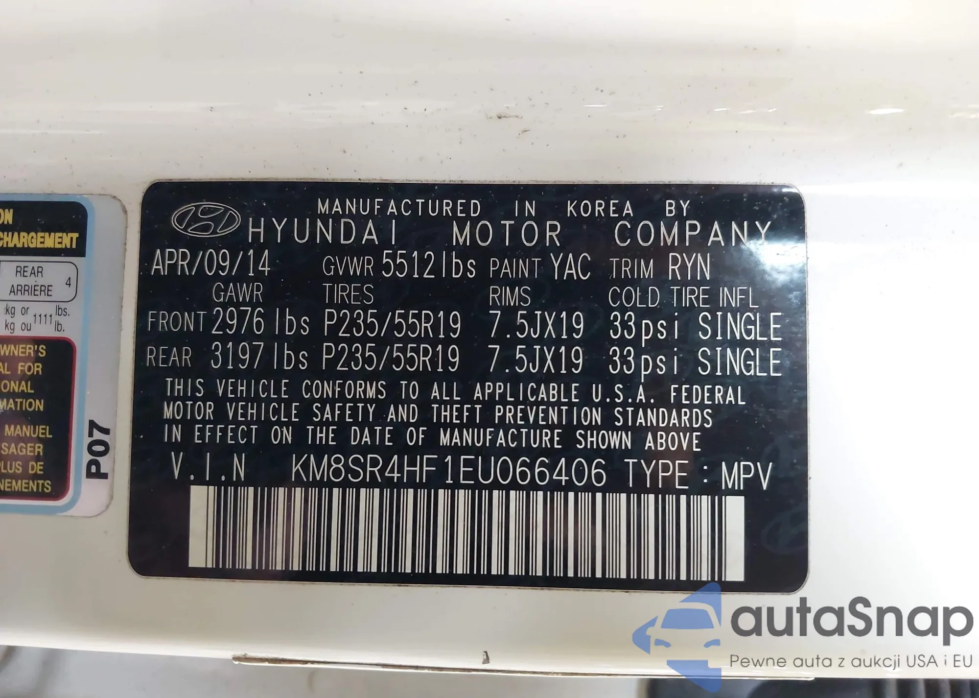 LOT: 42940473 VIN: KM8SR4HF1EU066406