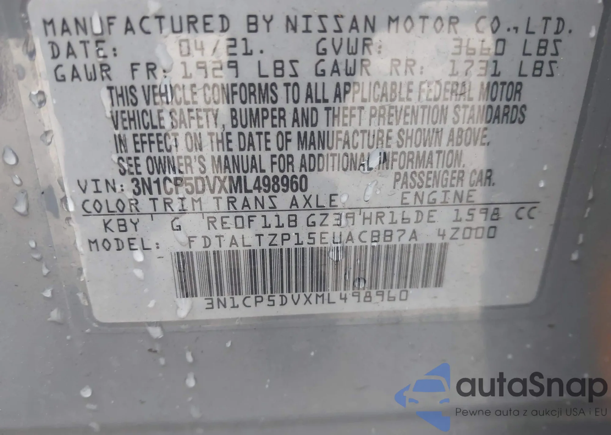 • VIN 3N1CP5DVXML498960