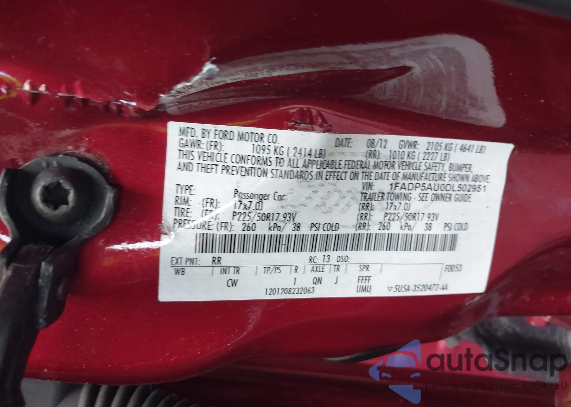• VIN 1FADP5AU0DL502951