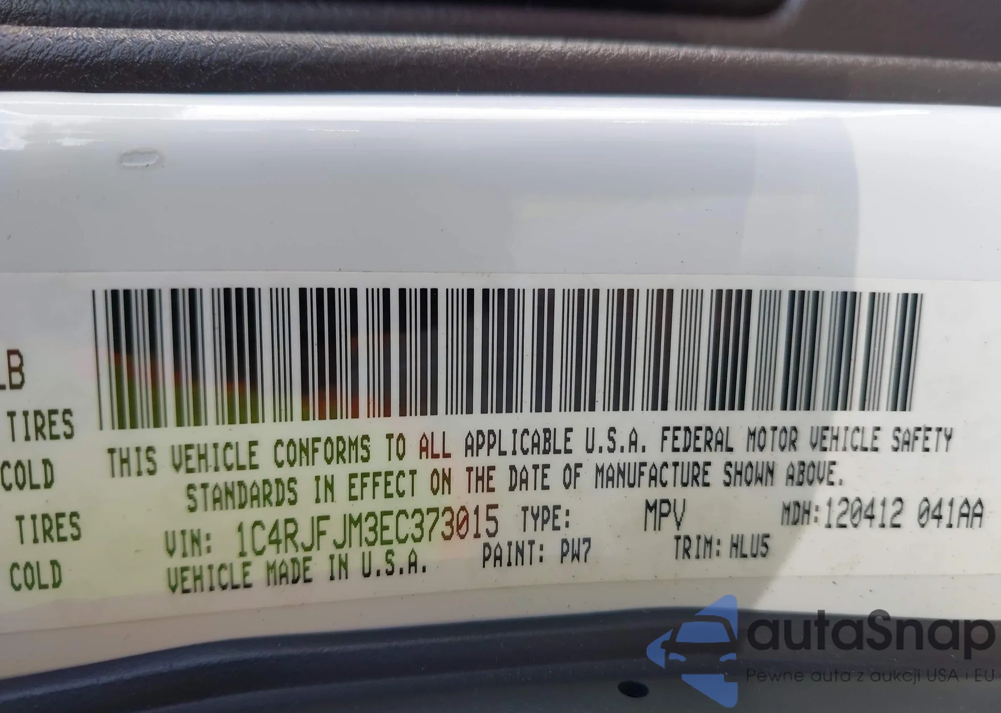 • VIN 1C4RJFJM3EC373015