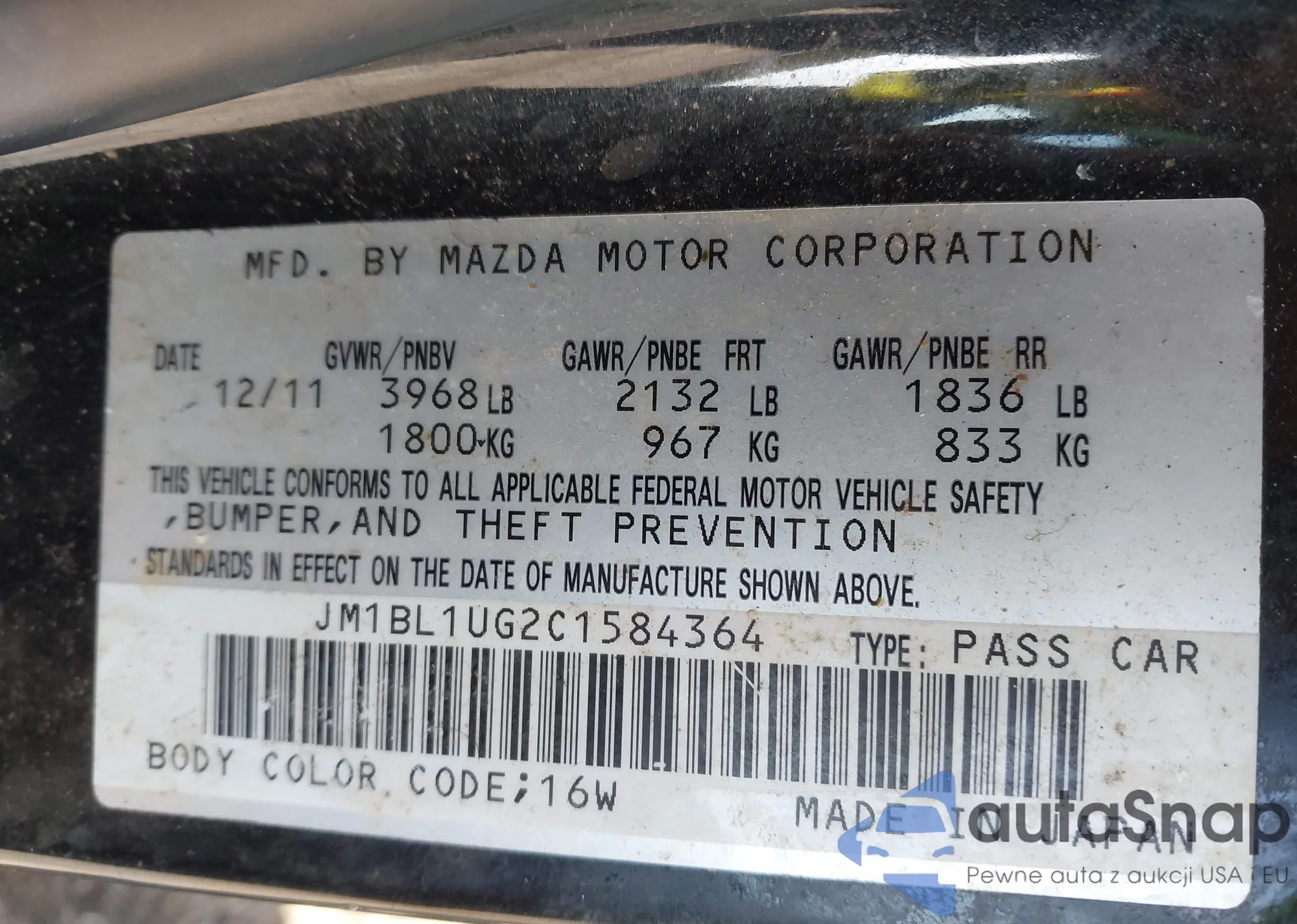 LOT: 43376652 VIN: JM1BL1UG2C1584364