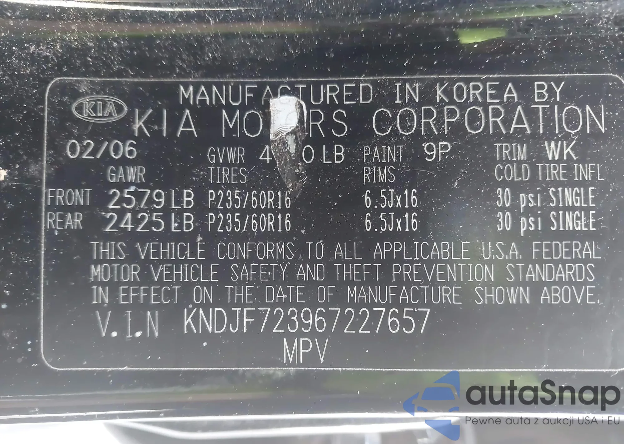 LOT: 43240977 VIN: KNDJF723967227657