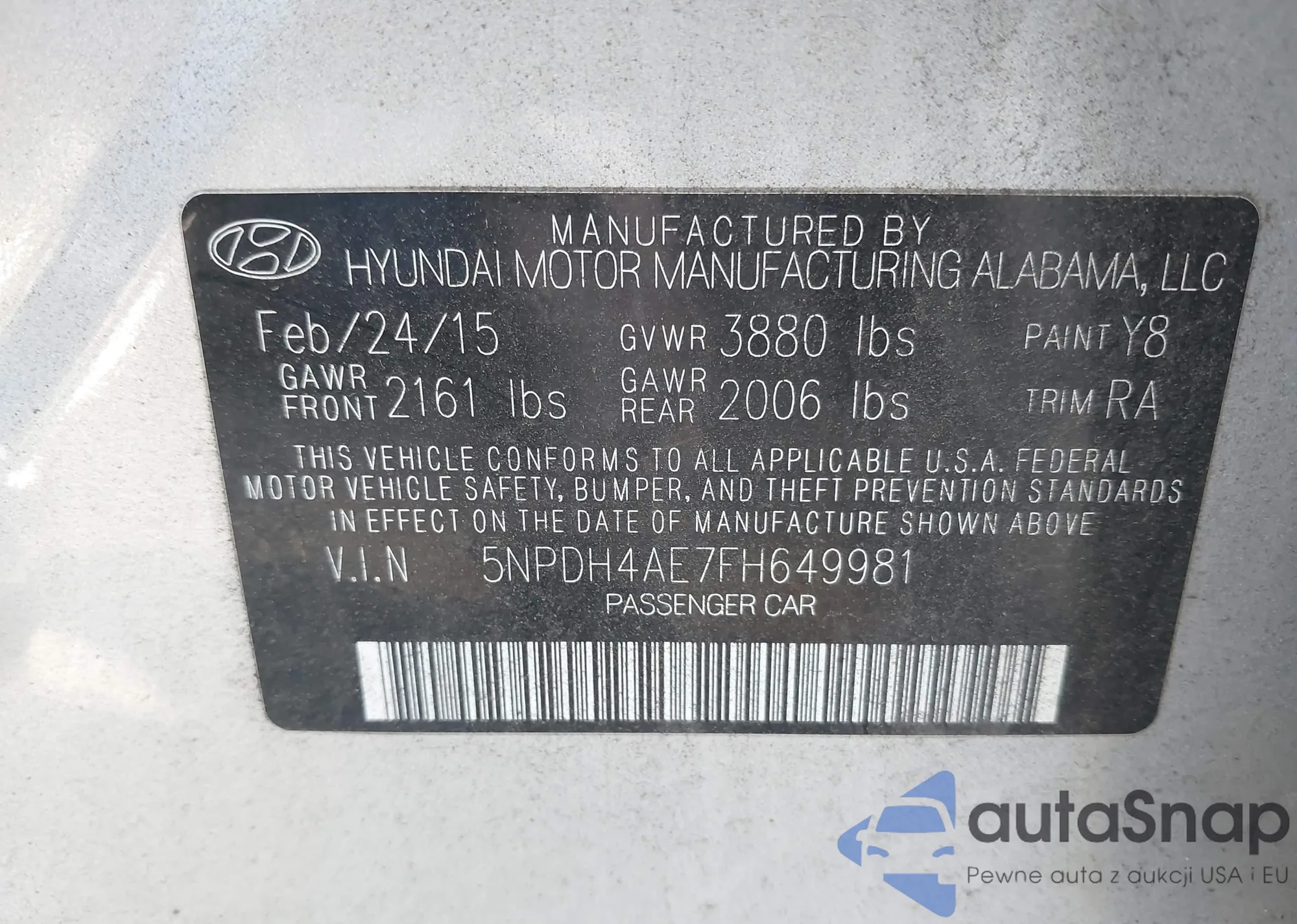 • VIN 5NPDH4AE7FH649981