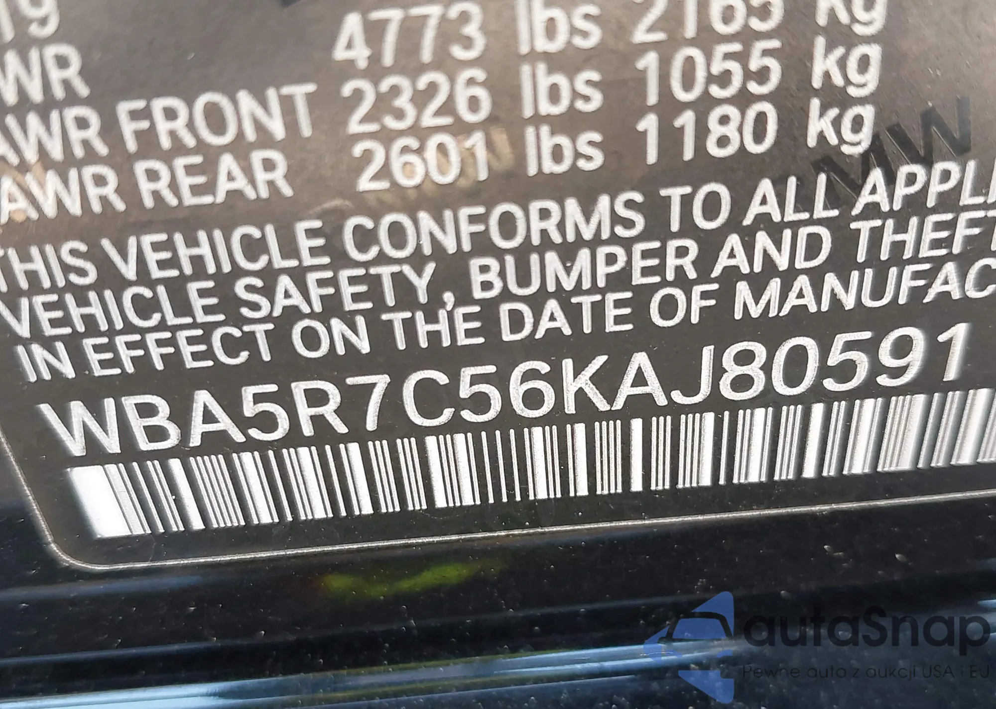 • VIN WBA5R7C56KAJ80591