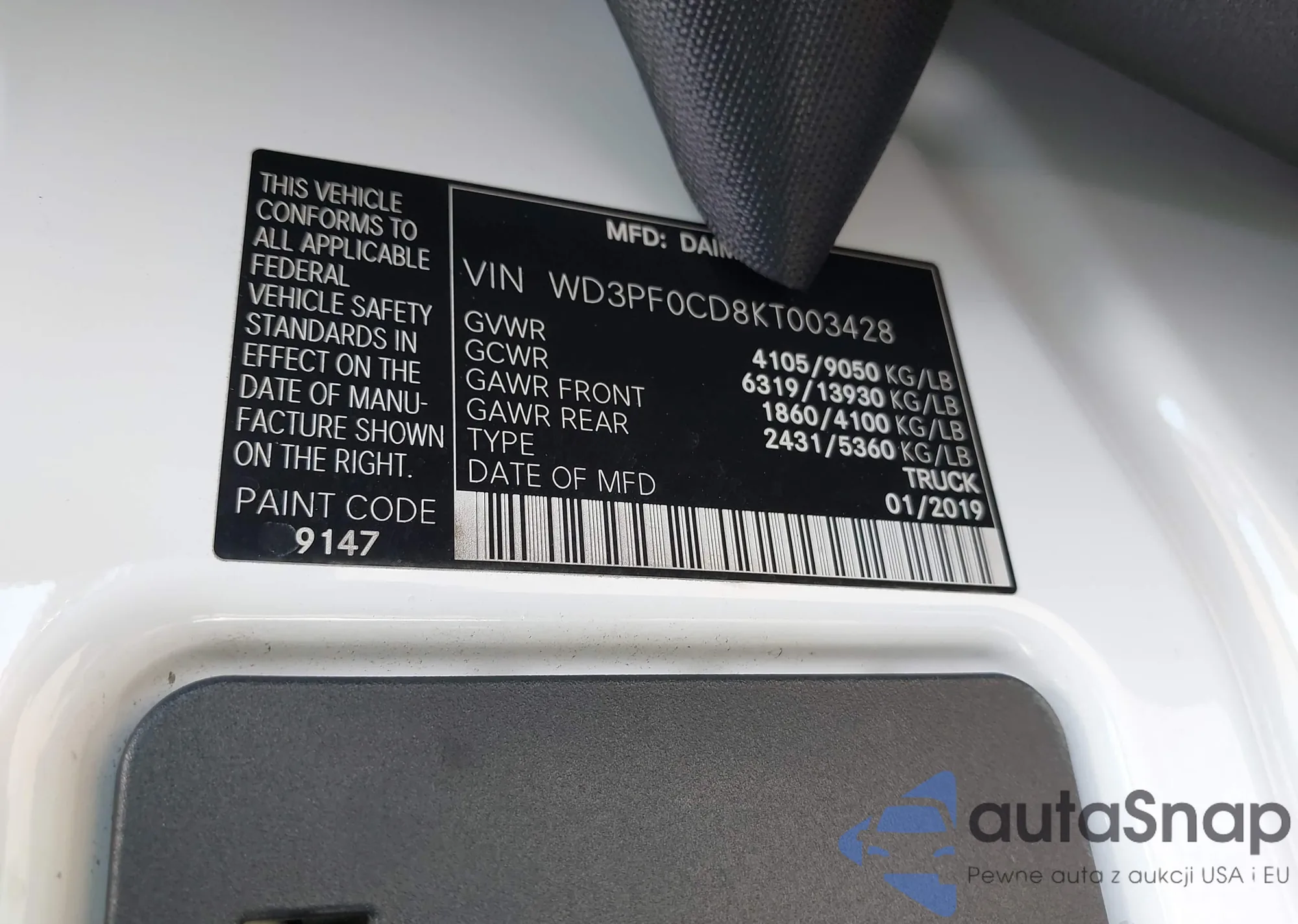 LOT: 42805220 VIN: WD3PF0CD8KT003428