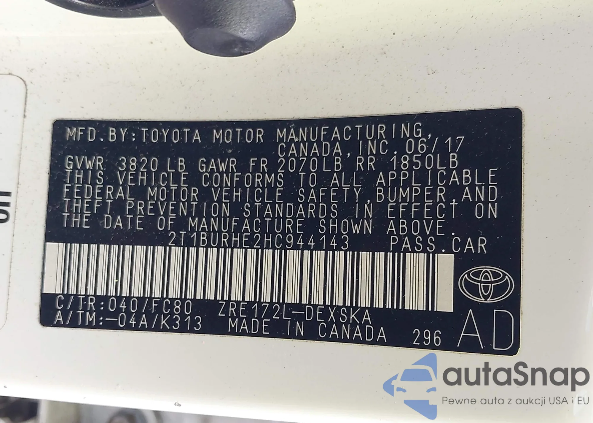 LOT: 42561311 VIN: 2T1BURHE2HC944143
