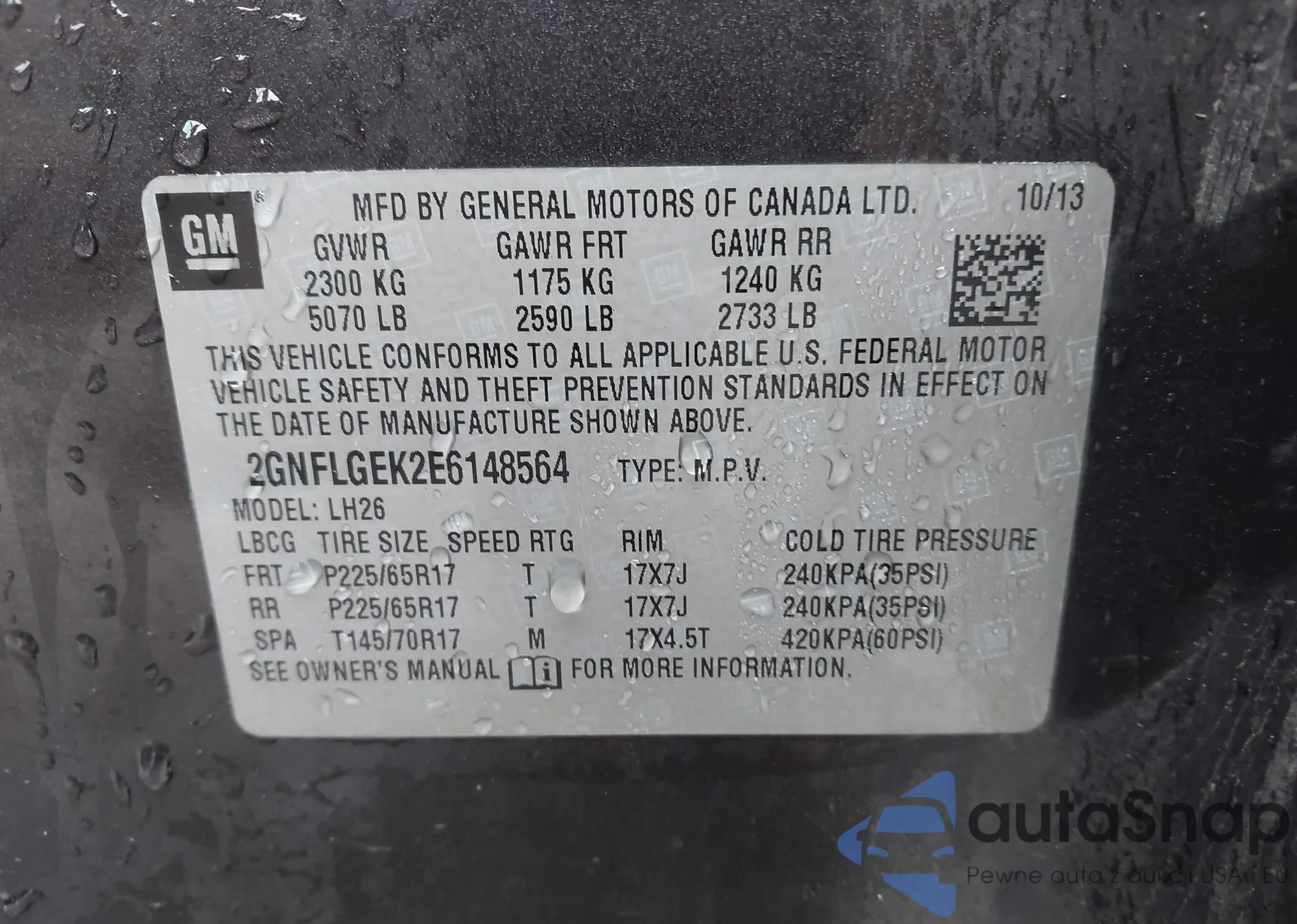 • VIN 2GNFLGEK2E6148564