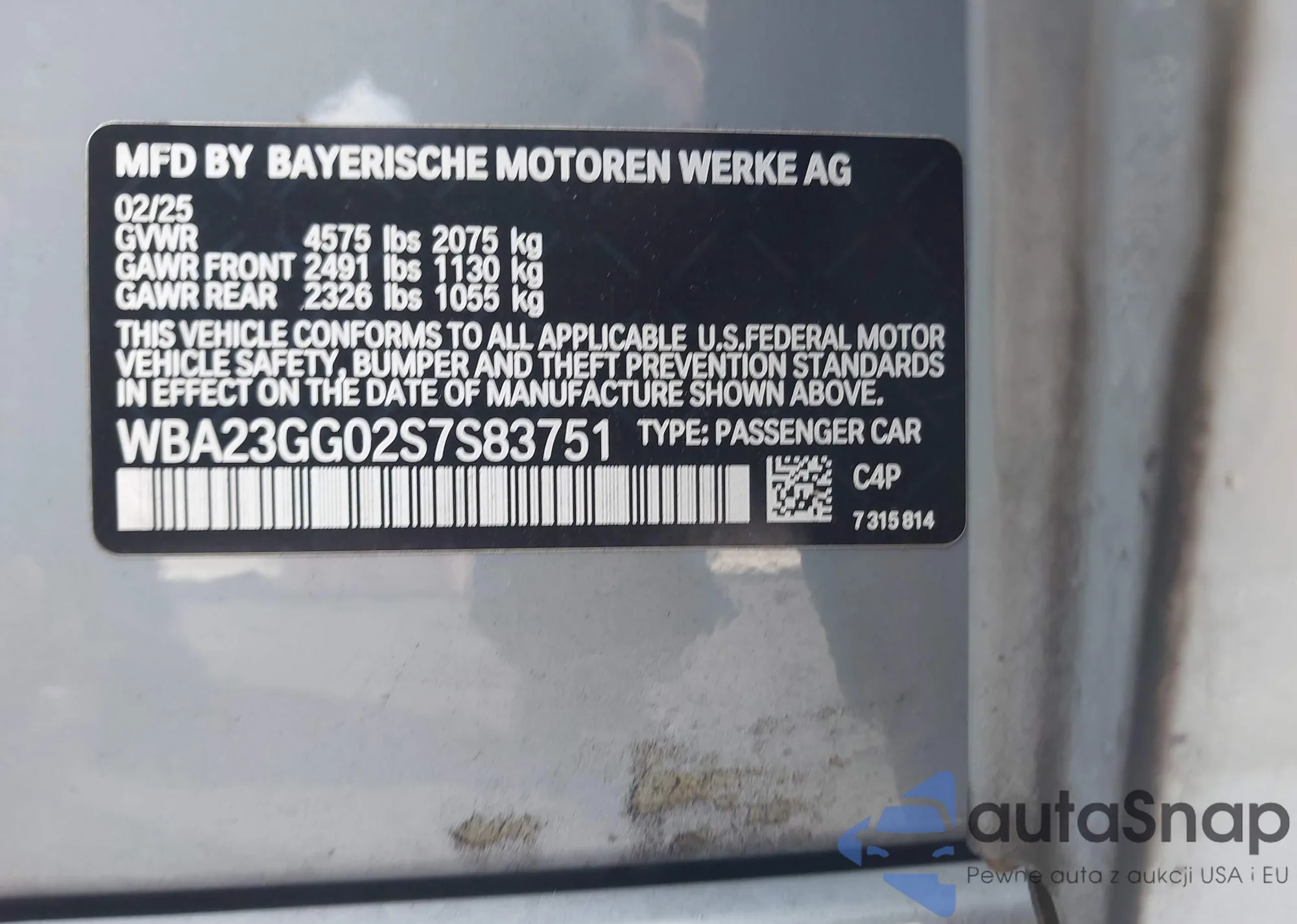 LOT: 42887875 VIN: WBA23GG02S7S83751