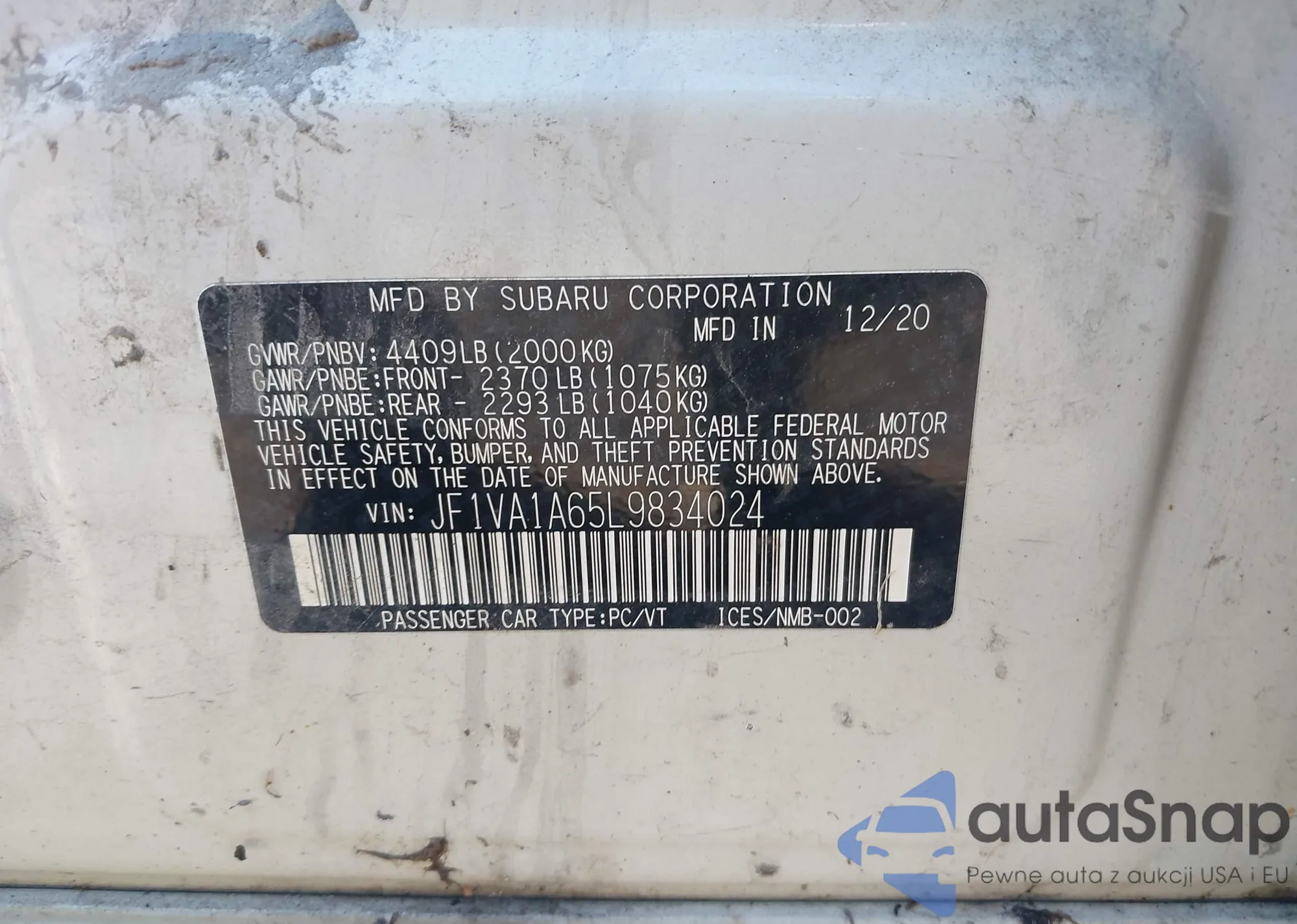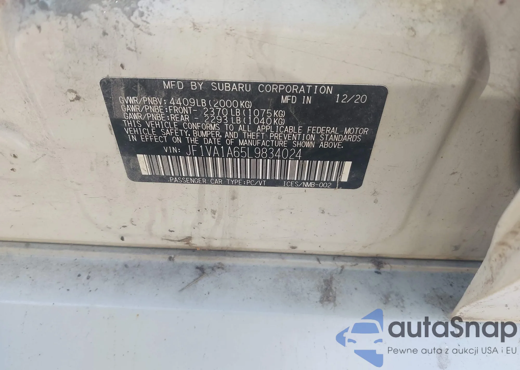 LOT: 43153029 VIN: JF1VA1A65L9834024