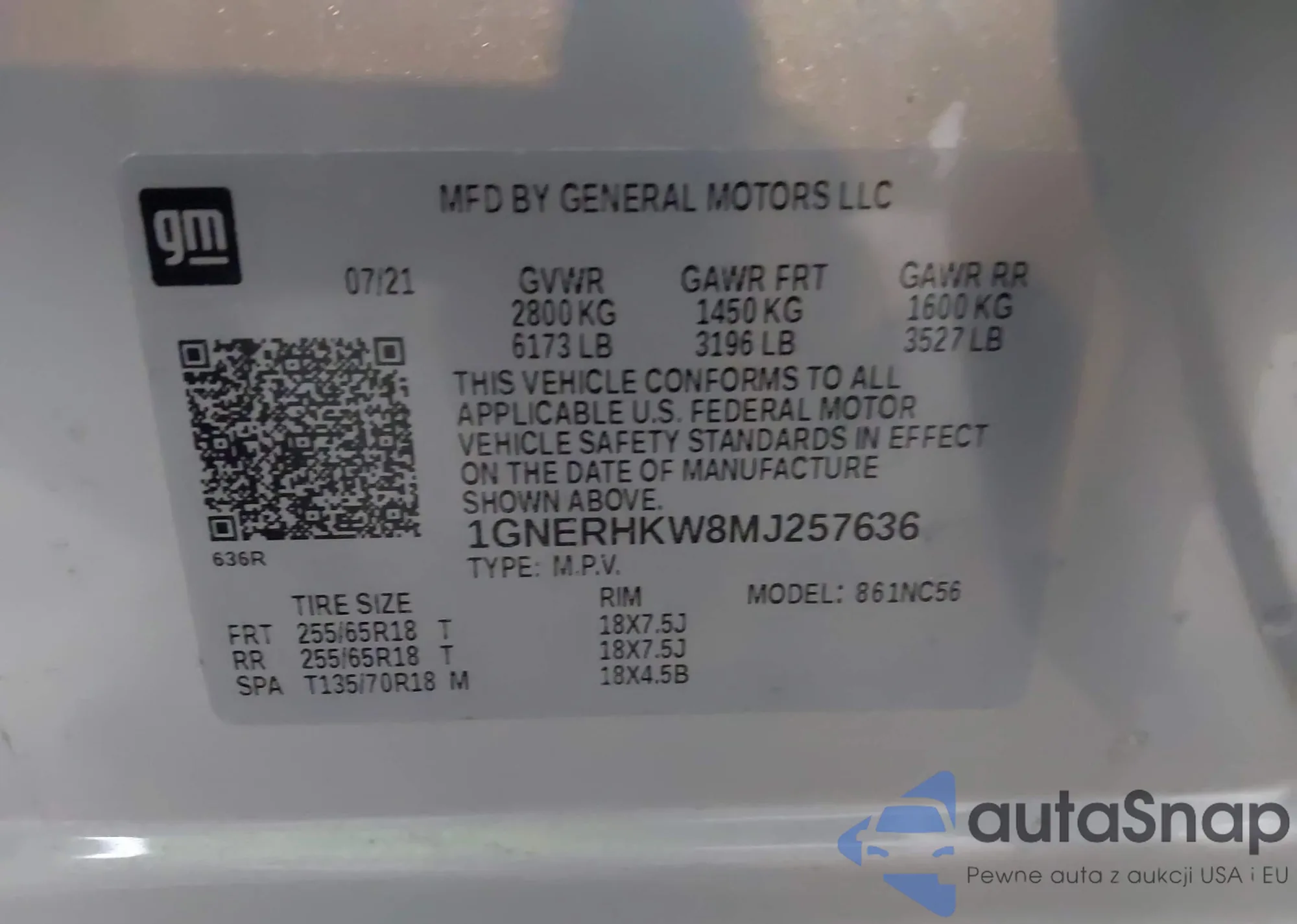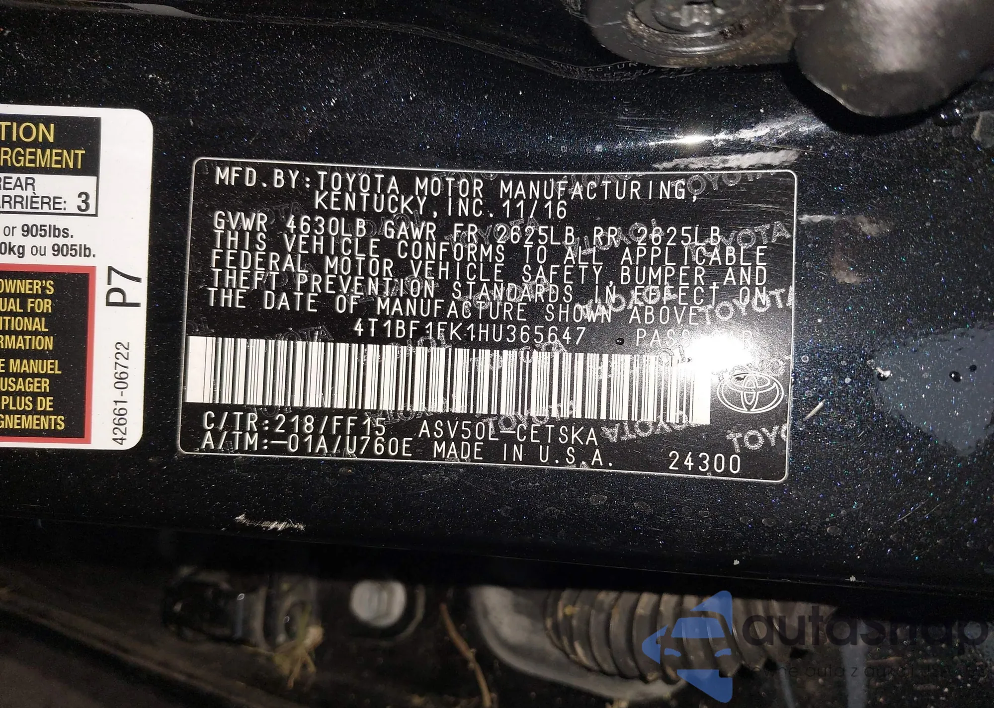 • VIN 4T1BF1FK1HU365647
