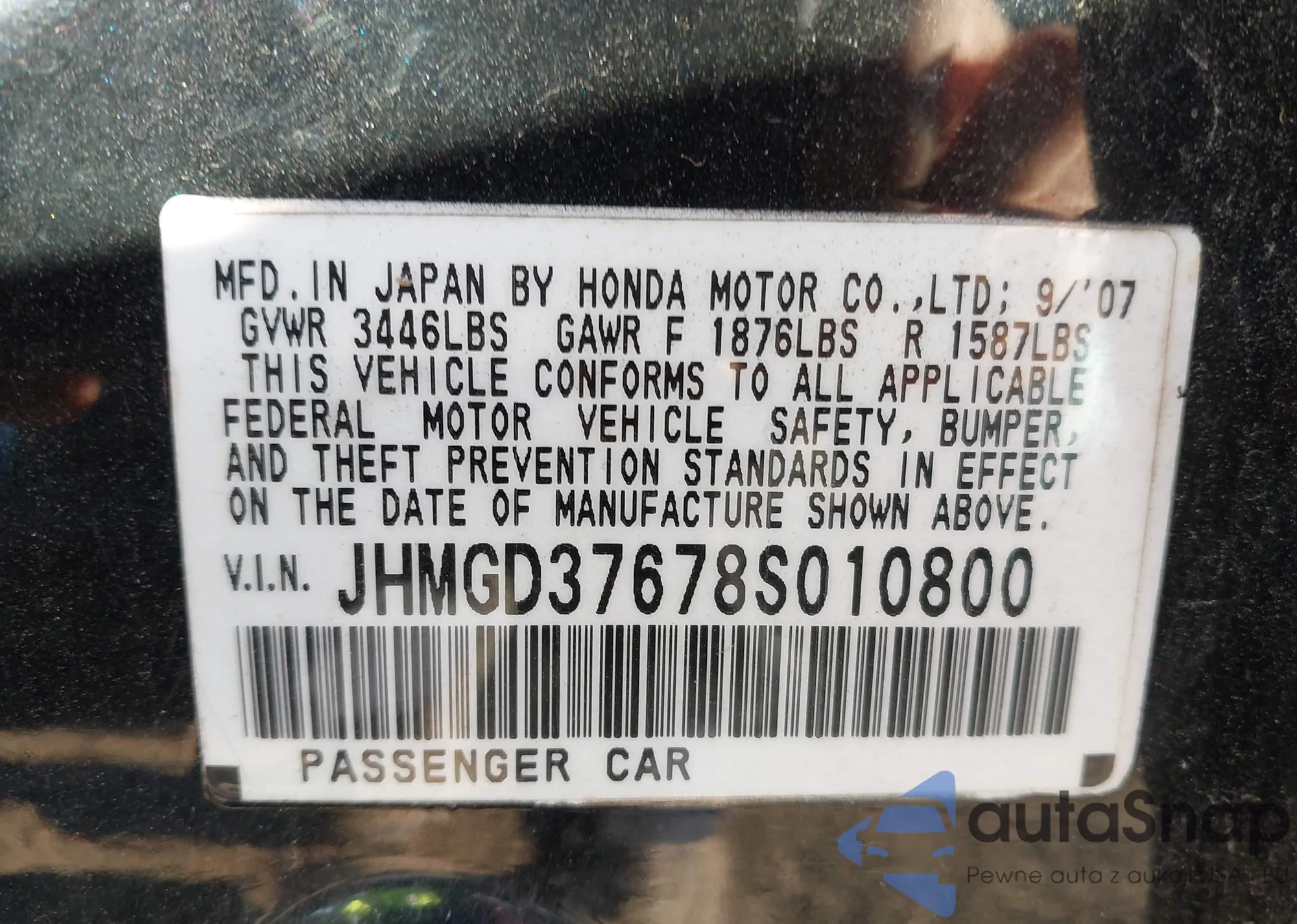 • VIN JHMGD37678S010800