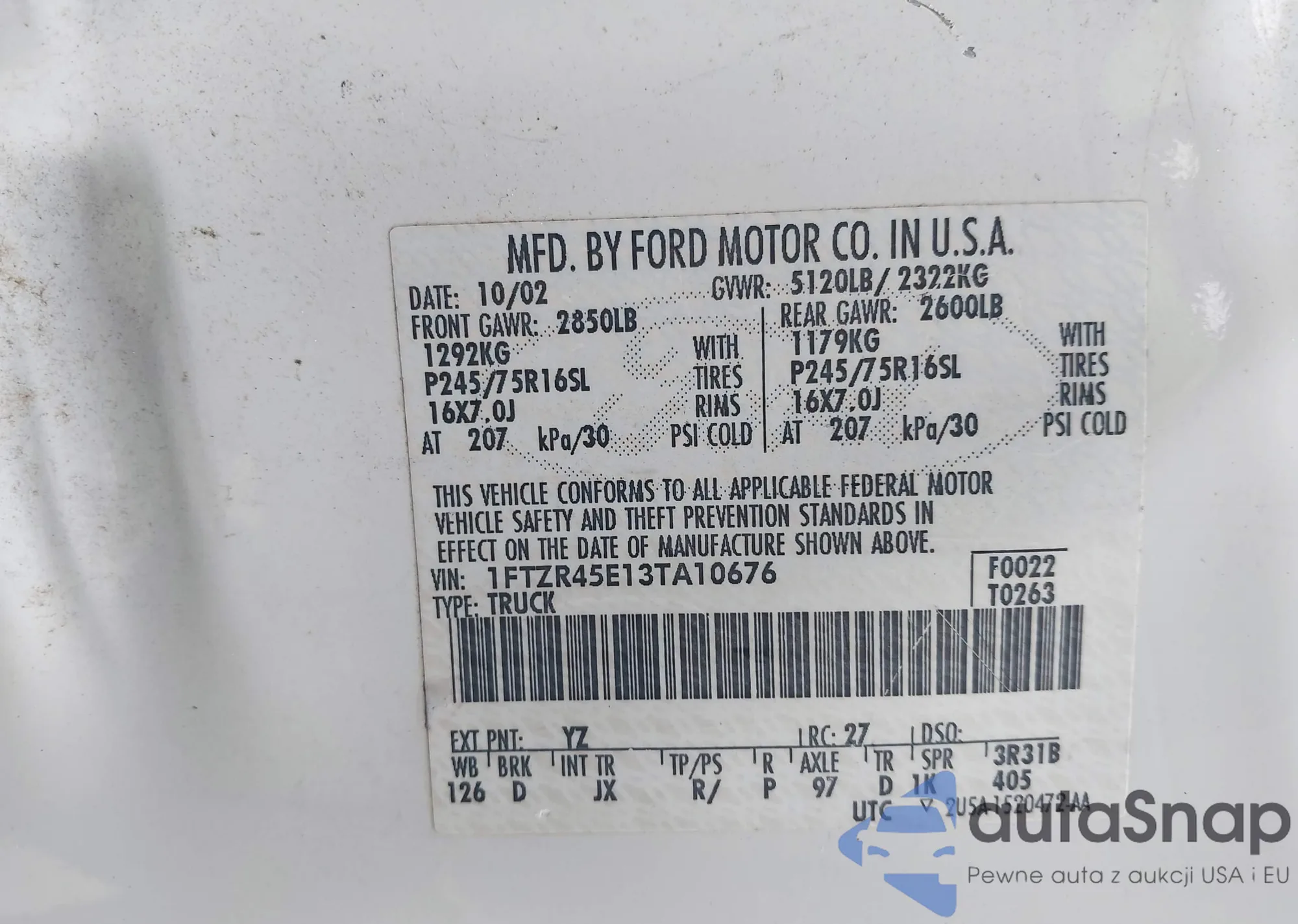 LOT: 43198089 VIN: WDBRF40J05F702618