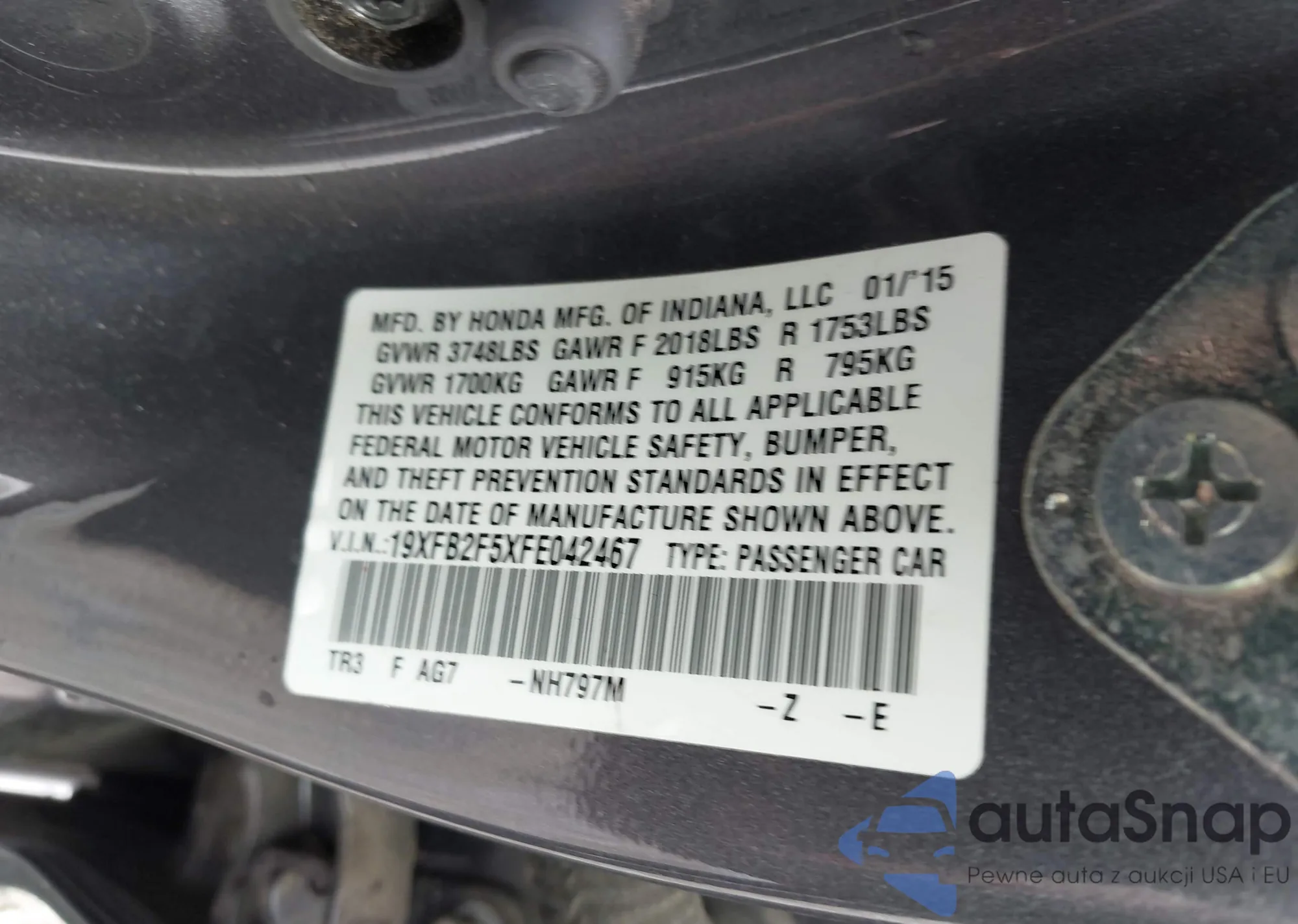 • VIN 19XFB2F5XFE042467