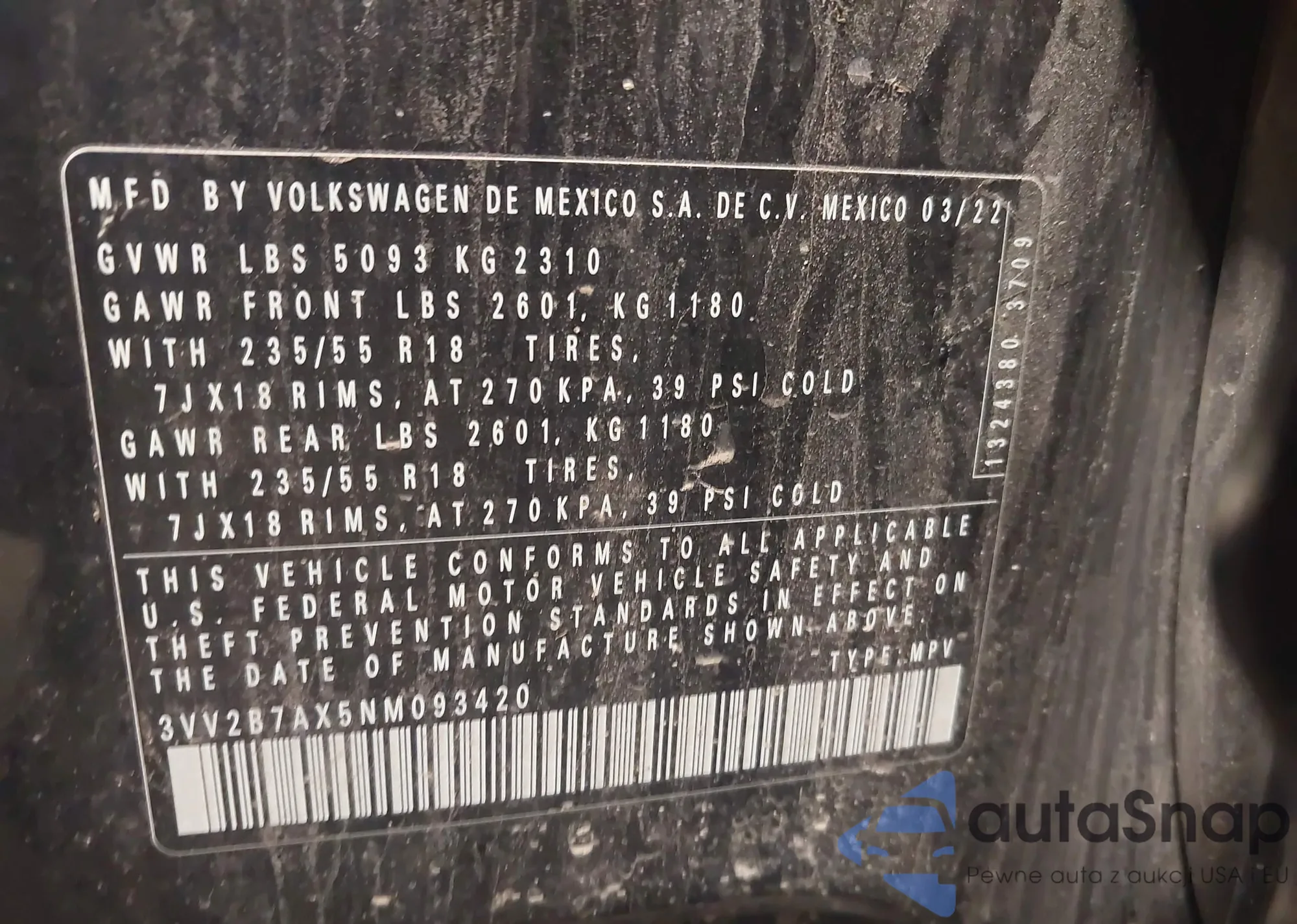 • VIN 3VV2B7AX5NM093420