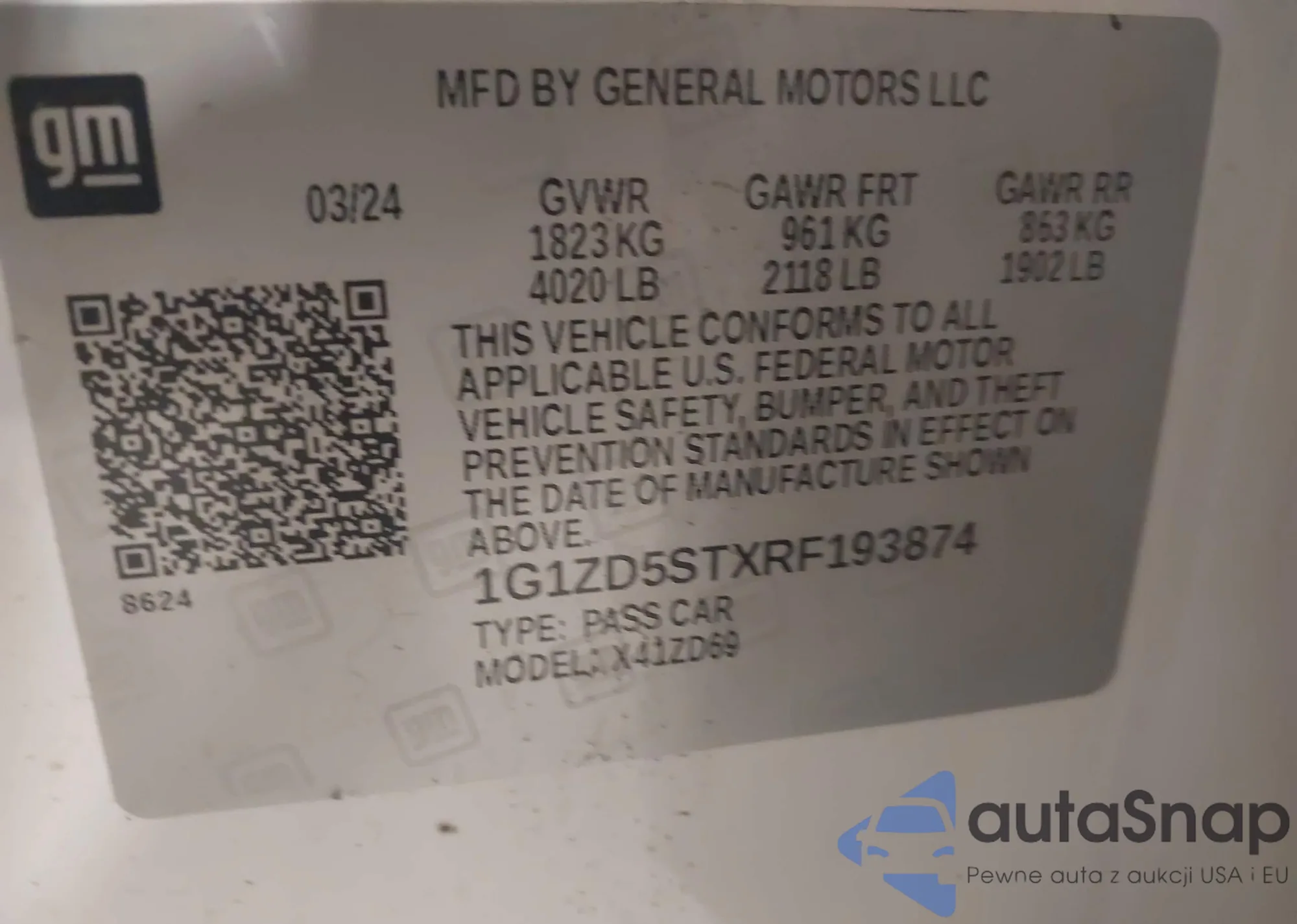LOT: 42816502 VIN: WBA4J1C57JBA30159