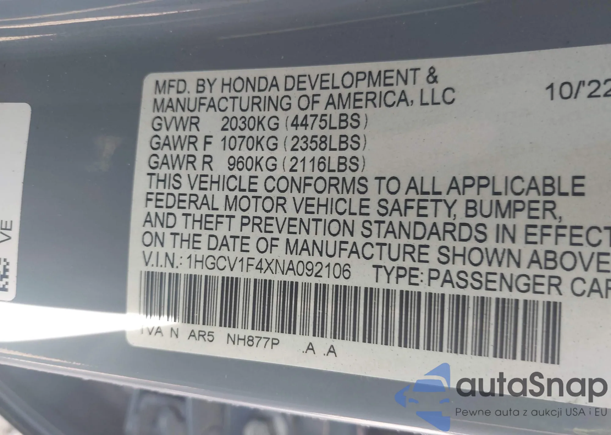 LOT: 42722133 VIN: 3VV2B7AX5NM093420