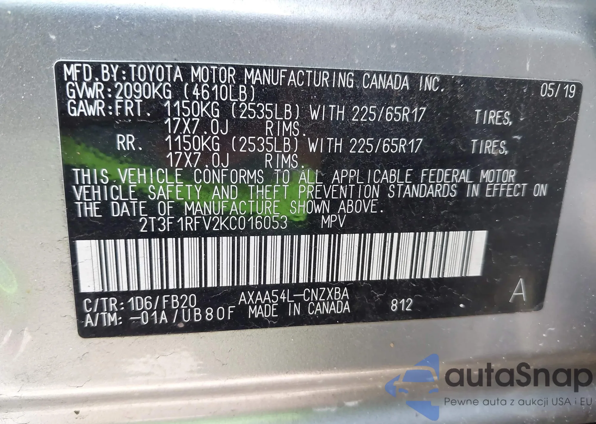 • VIN 2T3F1RFV2KC016053