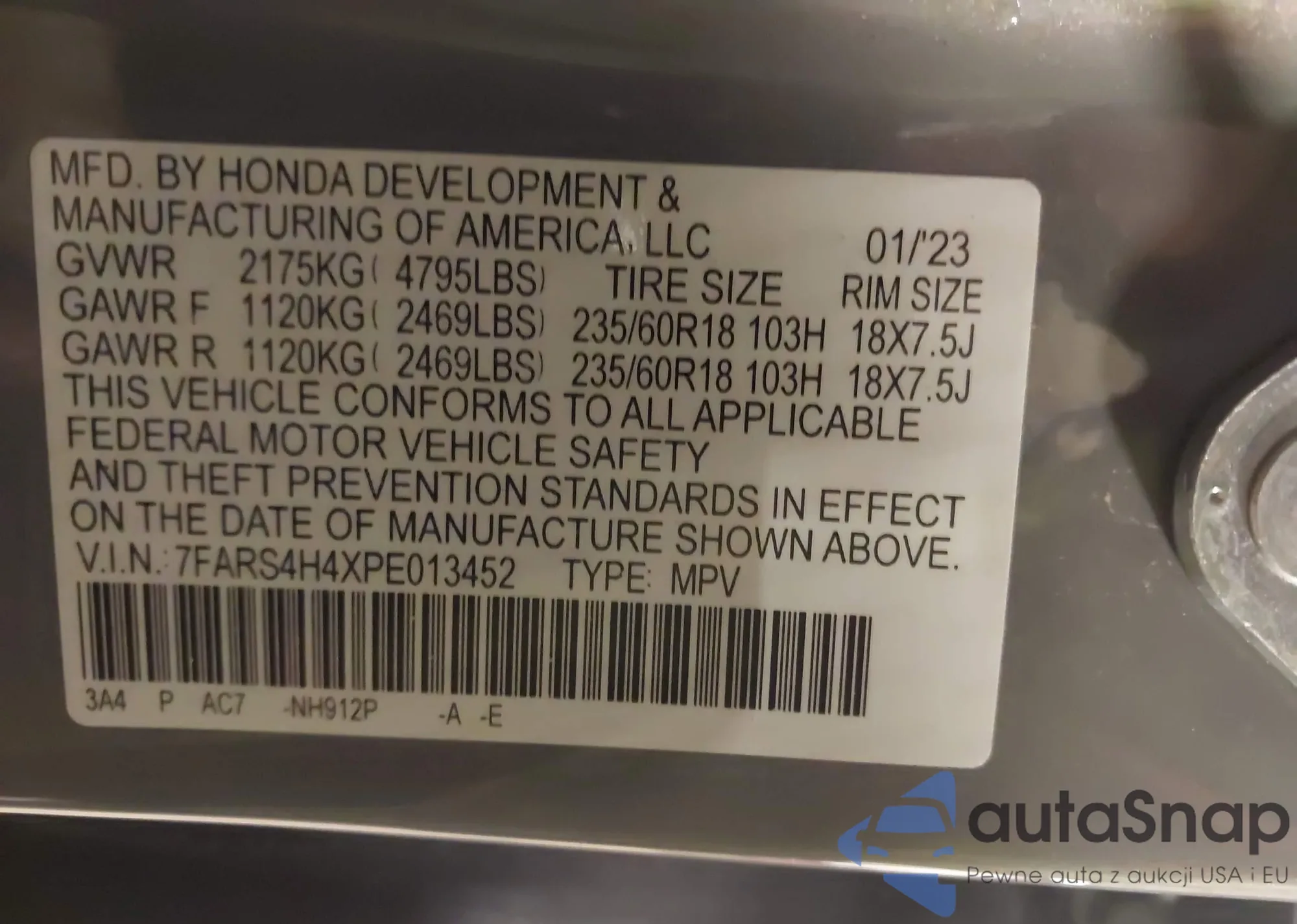 LOT: 42127342 VIN: 7FARS4H4XPE013452