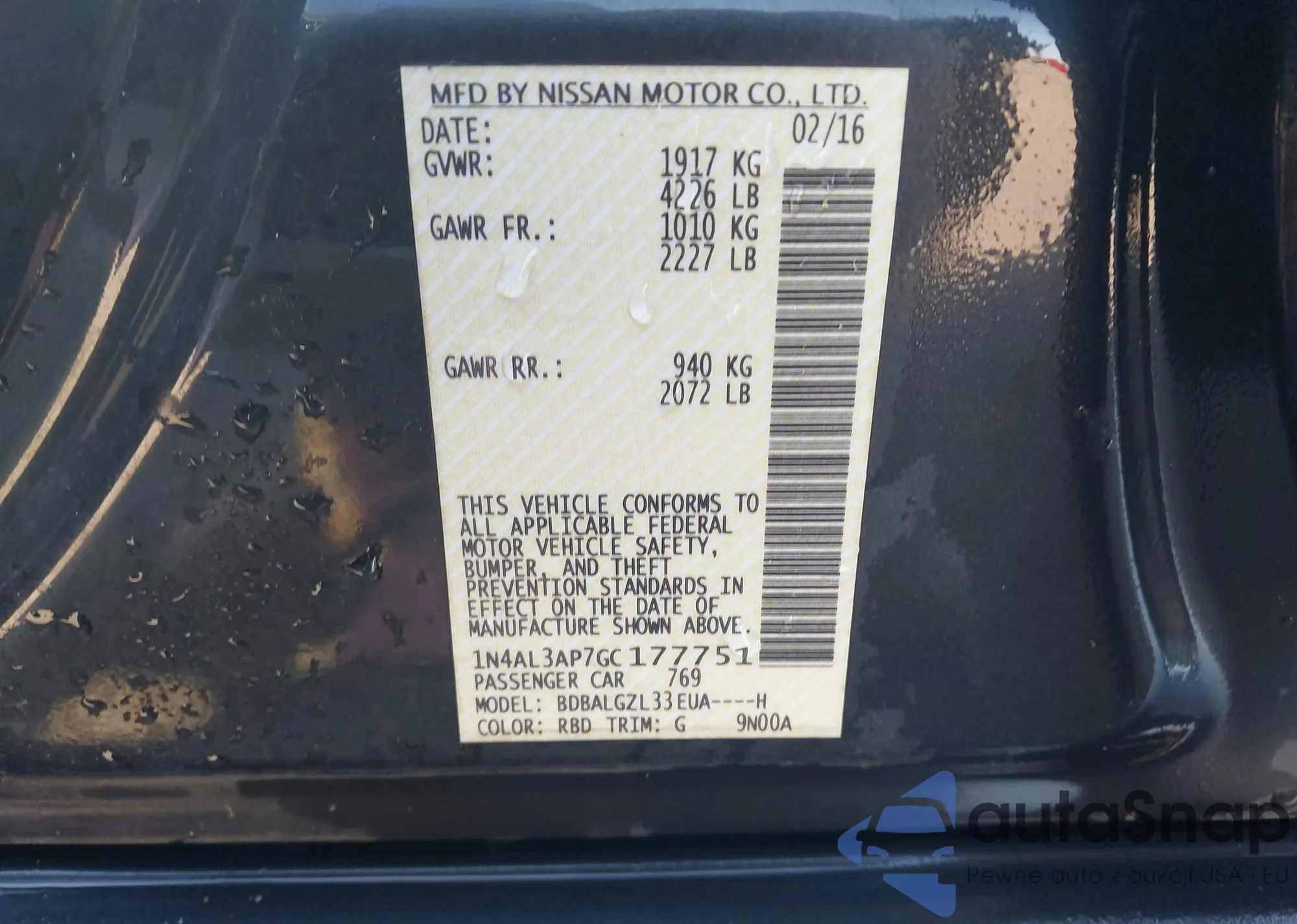 • VIN 1N4AL3AP7GC177751