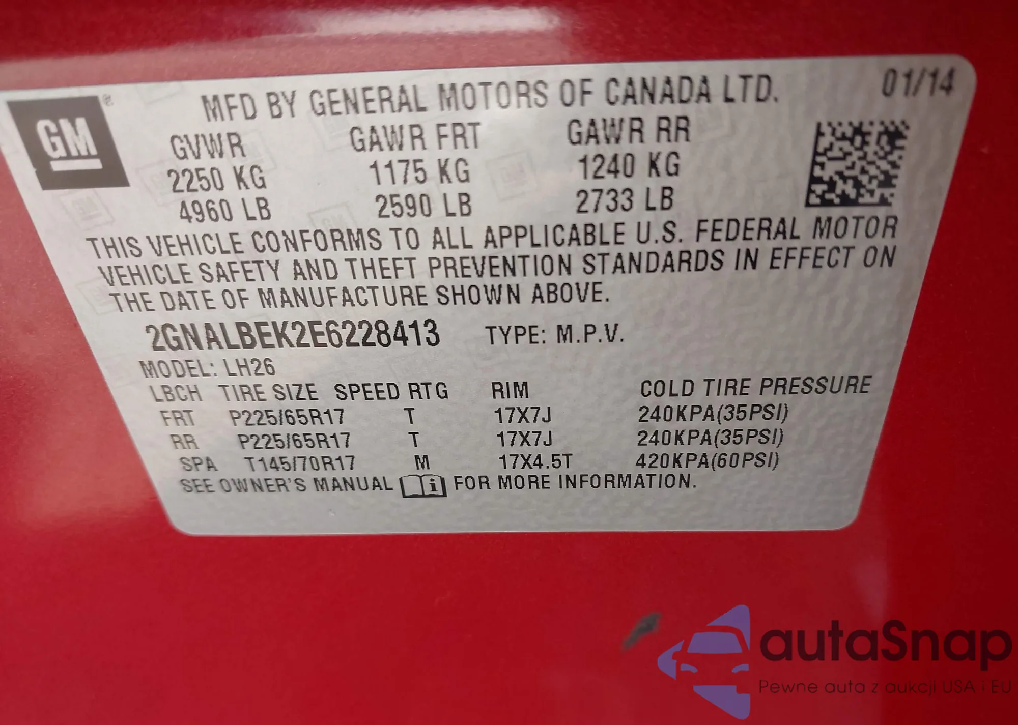 LOT: 43226754 VIN: 2GNALBEK2E6228413