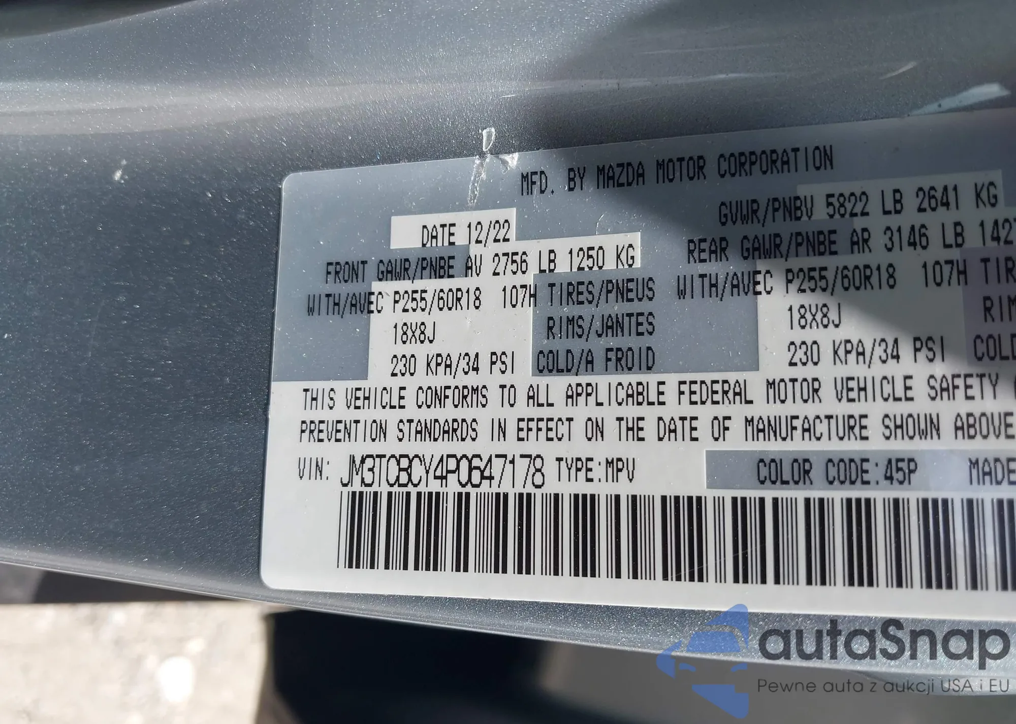 LOT: 43046691 VIN: JM3TCBCY4P0647178