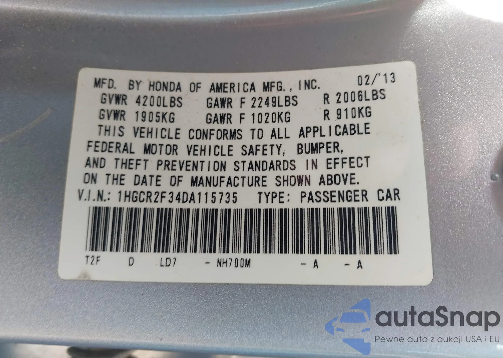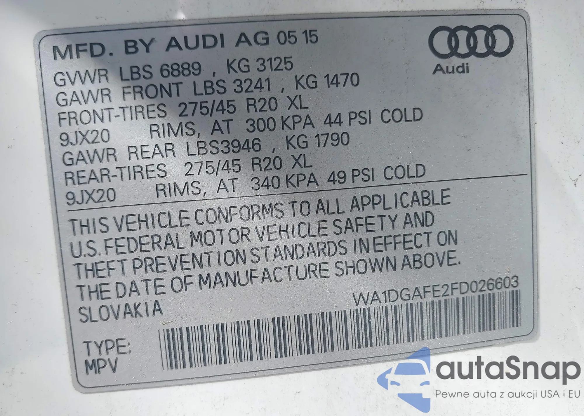 LOT: 43169787 VIN: WA1DGAFE2FD026603