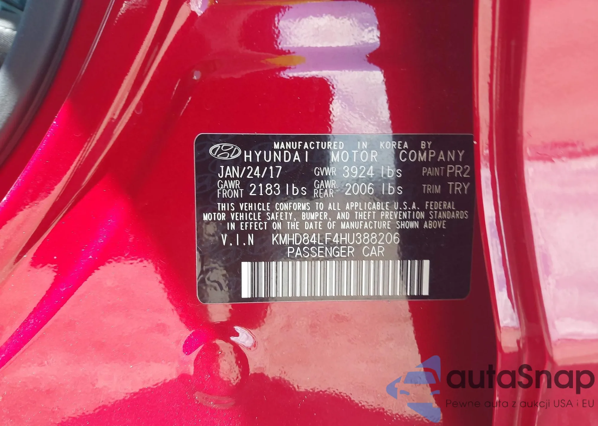 • VIN KMHFH4JG6DA326399