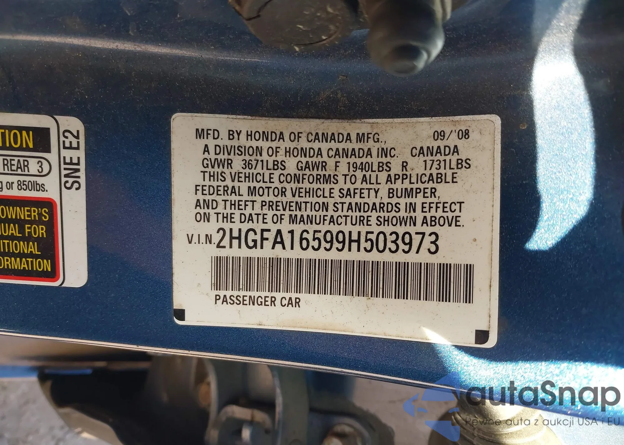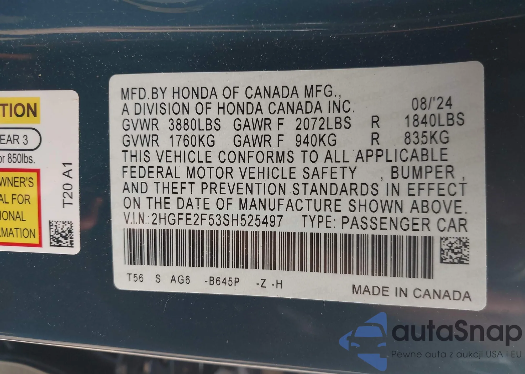 • VIN 2HGFE2F53SH525497