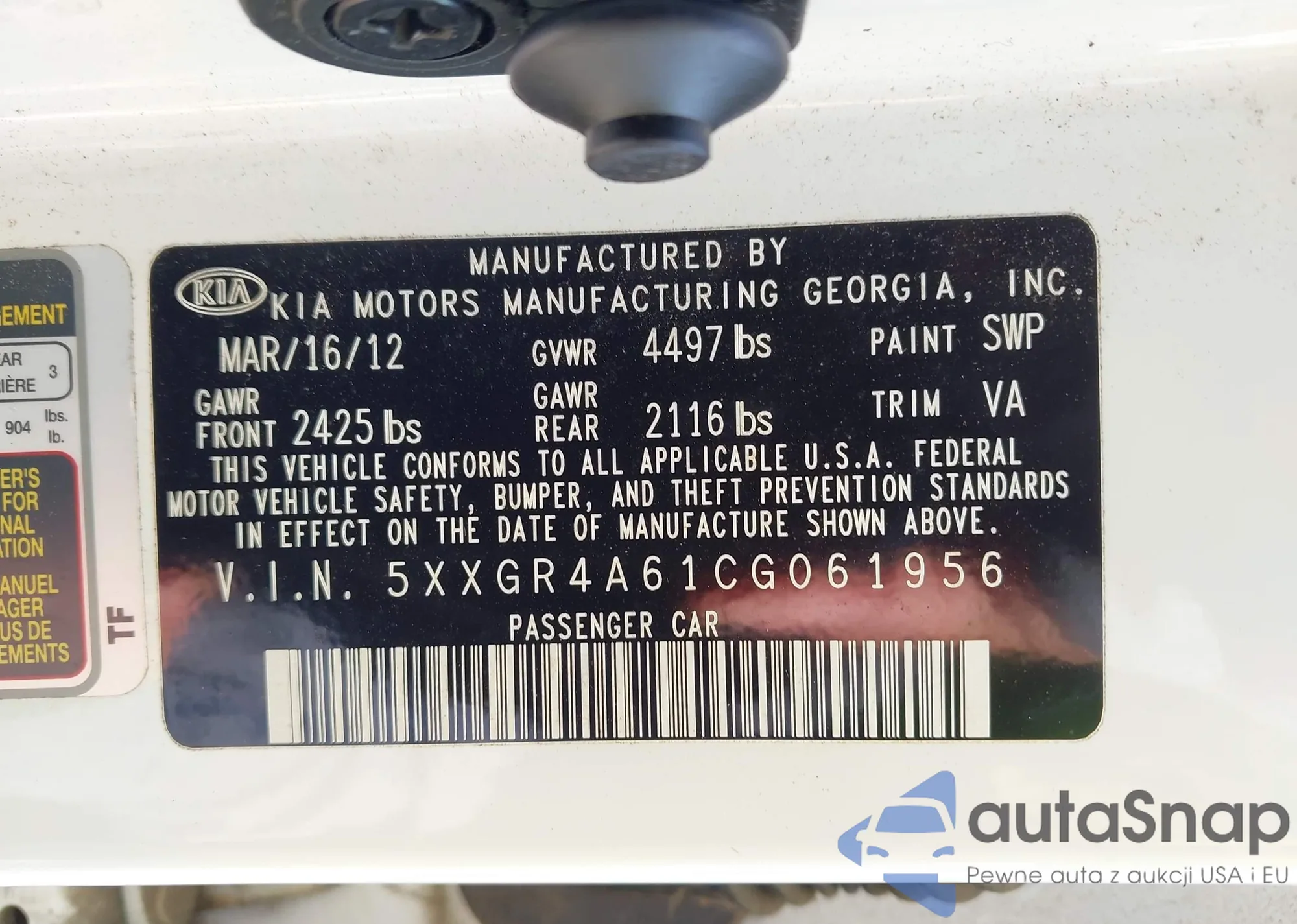 • VIN 5XXGR4A61CG061956