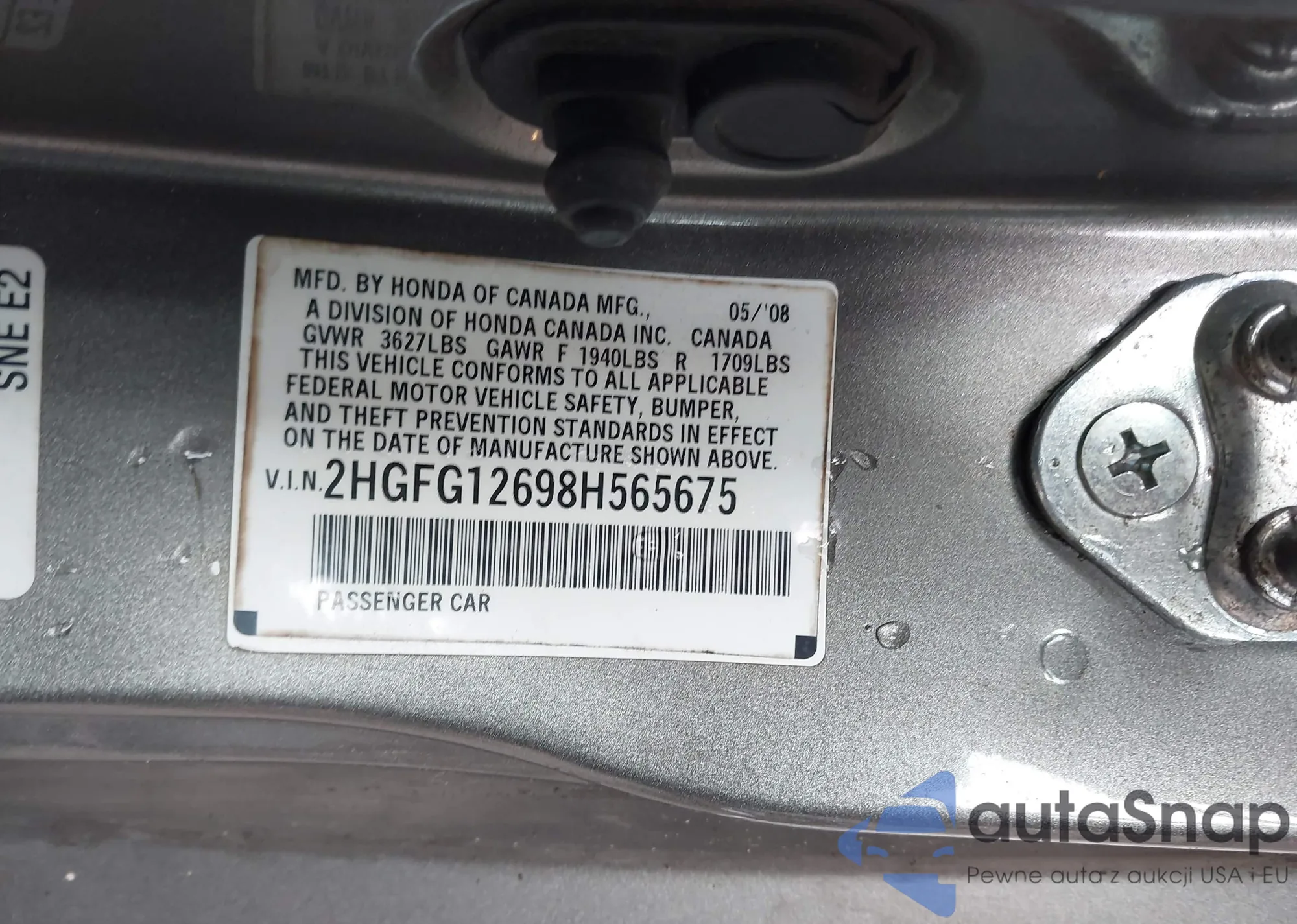LOT: 43241512 VIN: 2HGFG12698H565675