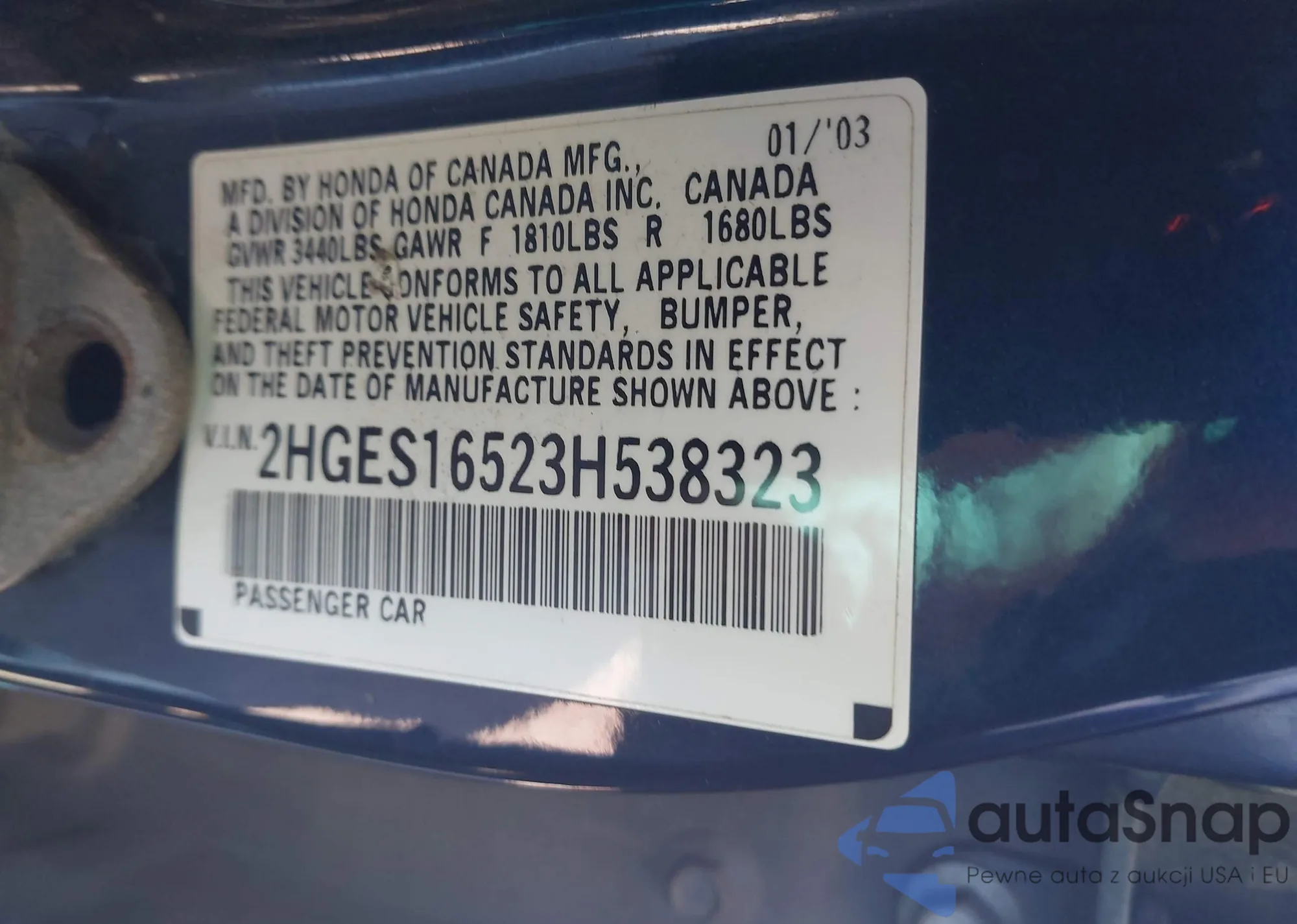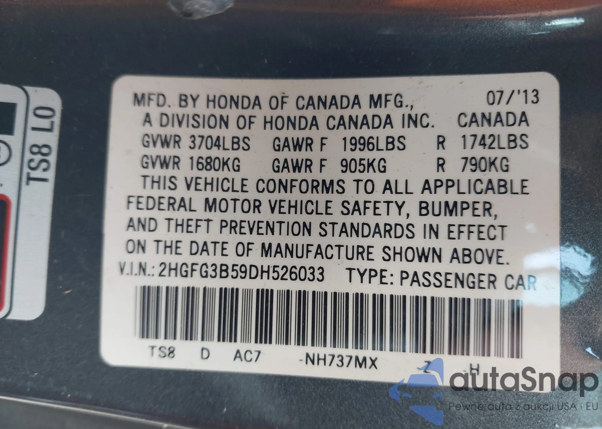 • VIN 2HGFG3B88CH533046