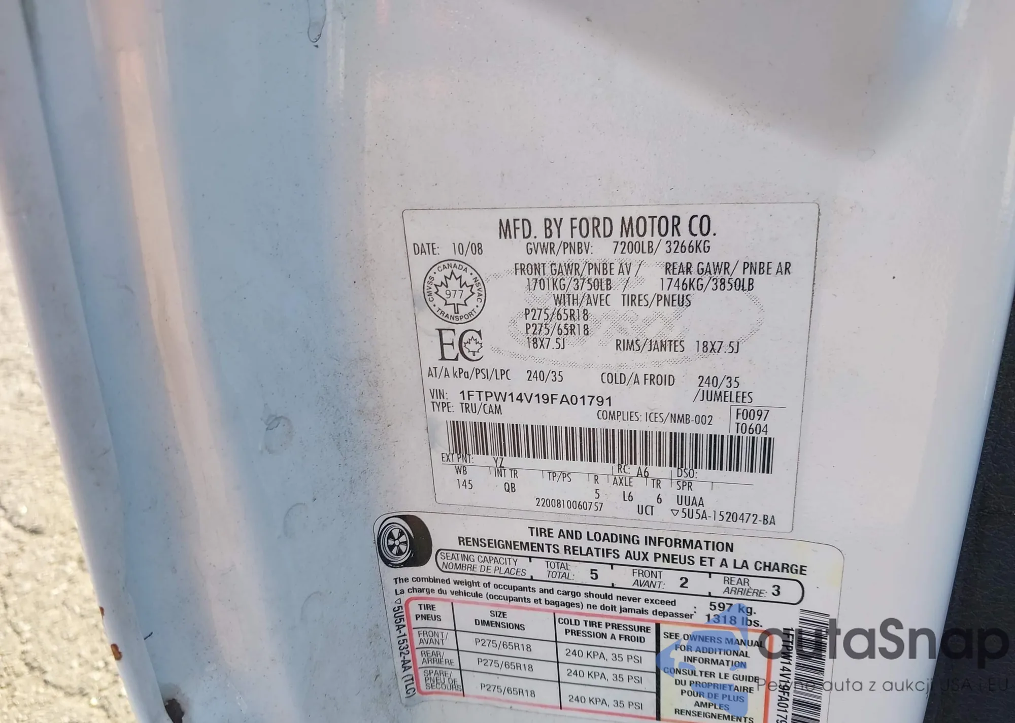 LOT: 43182354 VIN: 1FMEU63E18UA42861