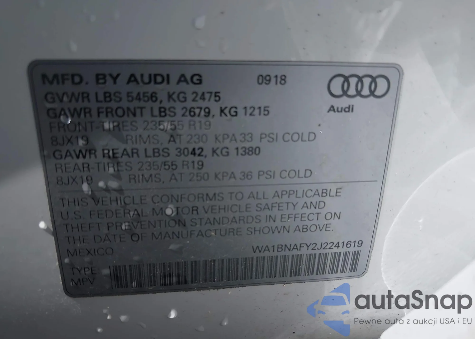 LOT: 43196391 VIN: WA1BNAFY2J2241619