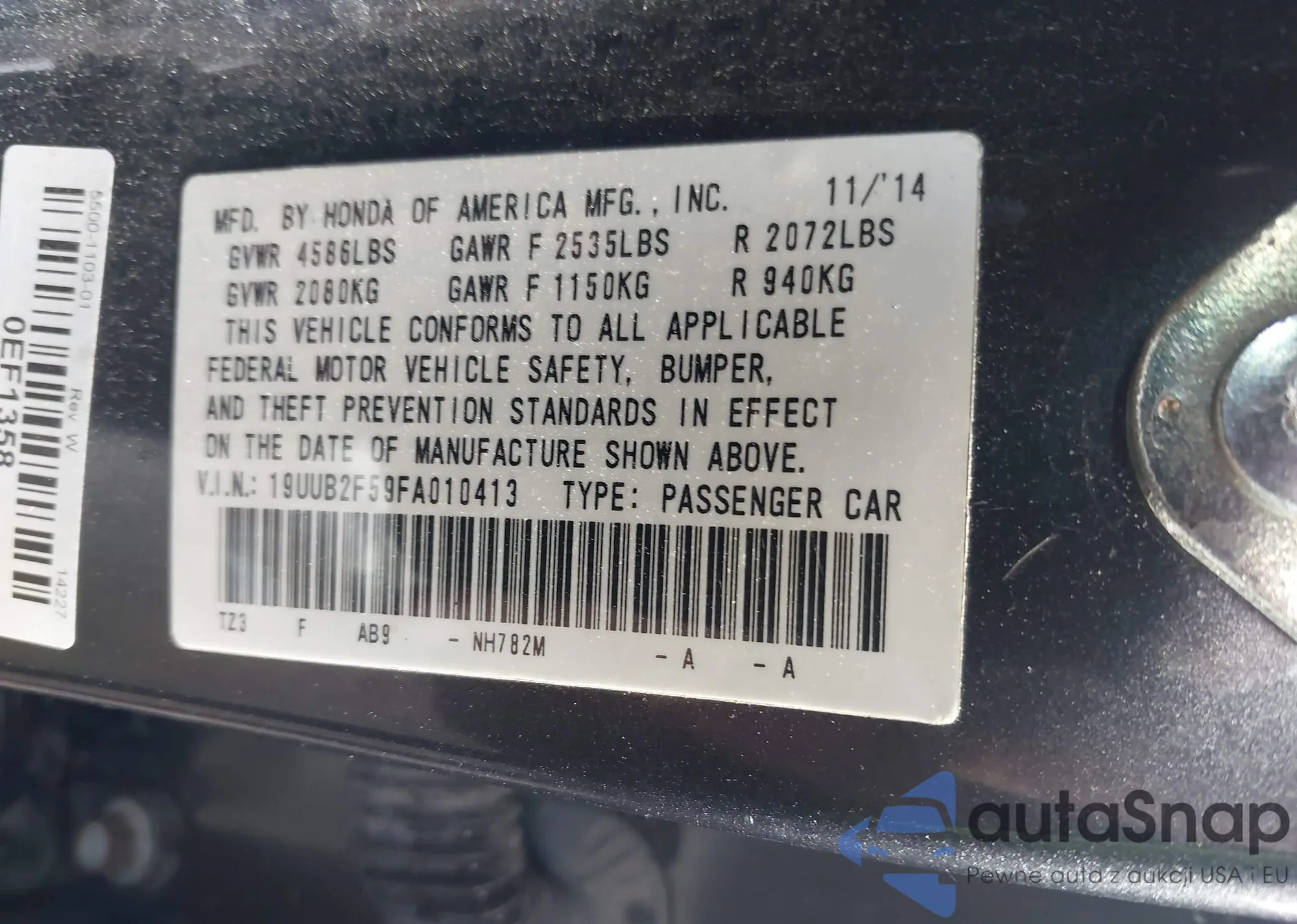 • VIN 1HGCV2F37NA011821