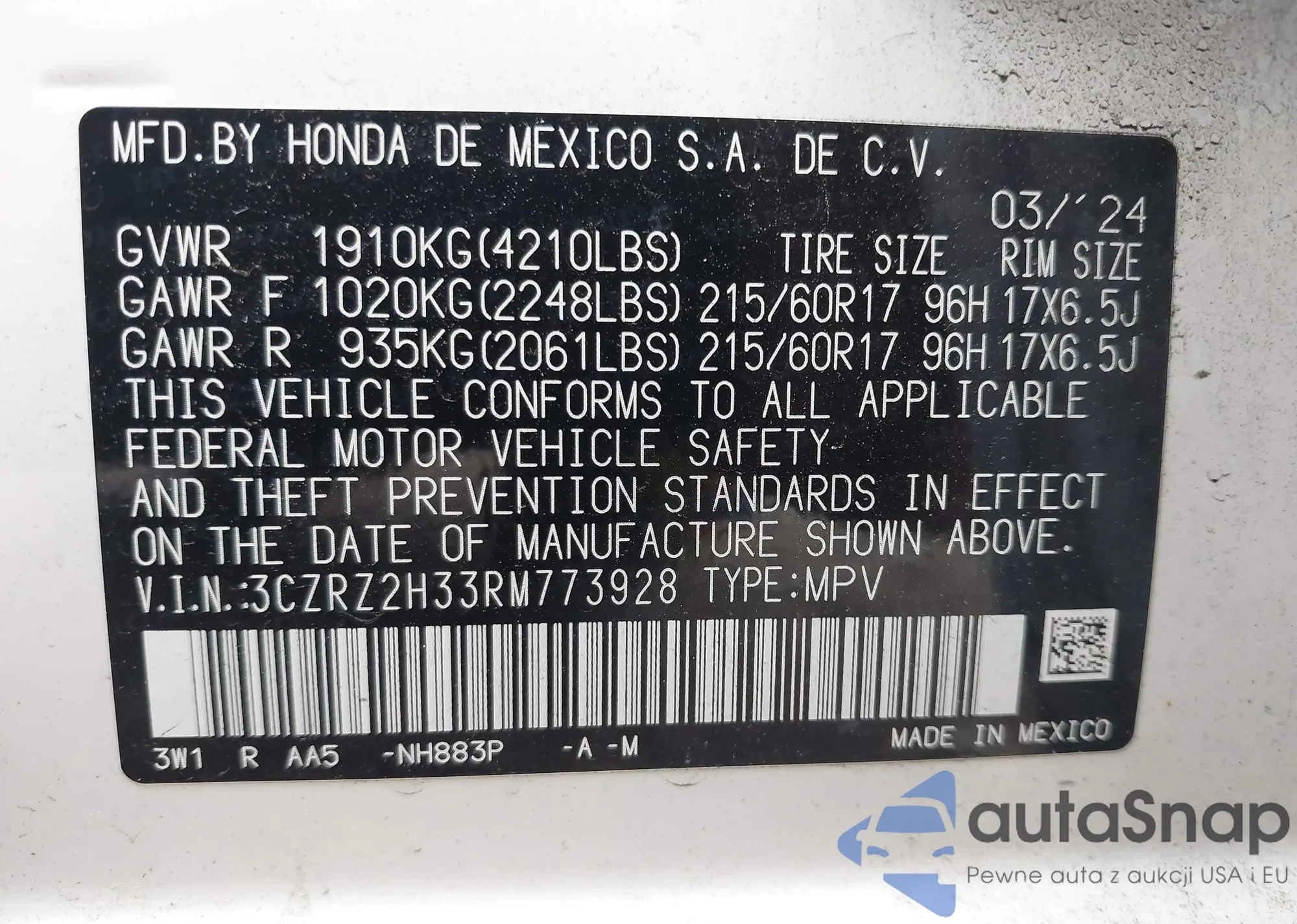 • VIN 3CZRZ2H33RM773928