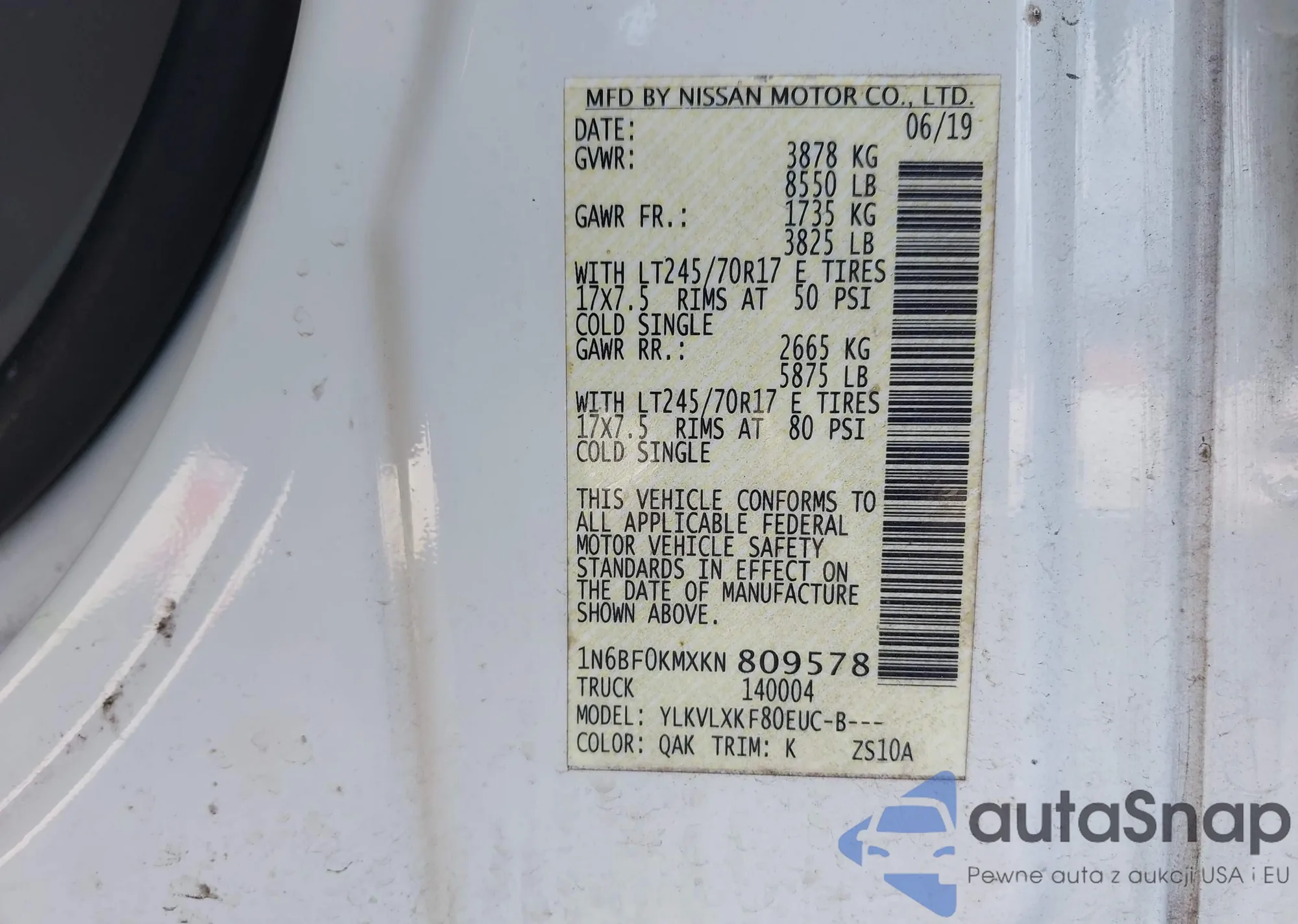 • VIN 1N6BF0KMXKN809578
