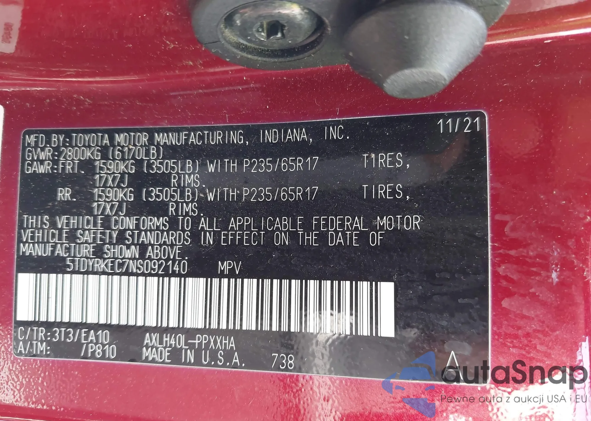 • VIN 5TDYRKEC7NS092140