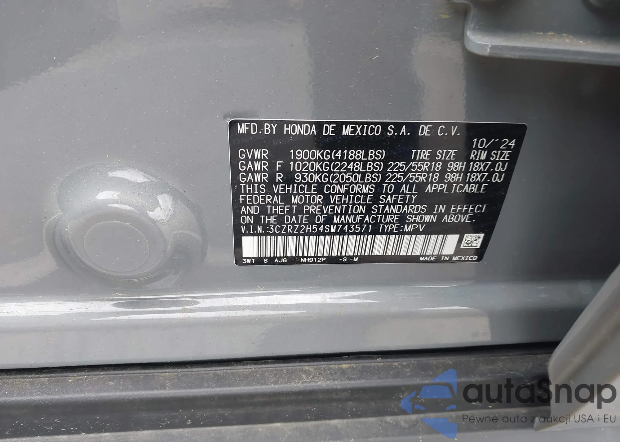 • VIN 3CZRZ2H54SM743571