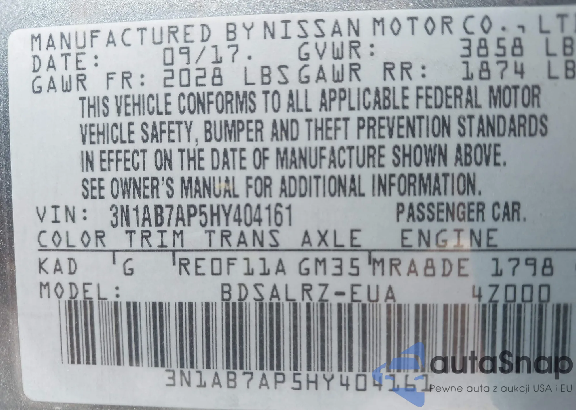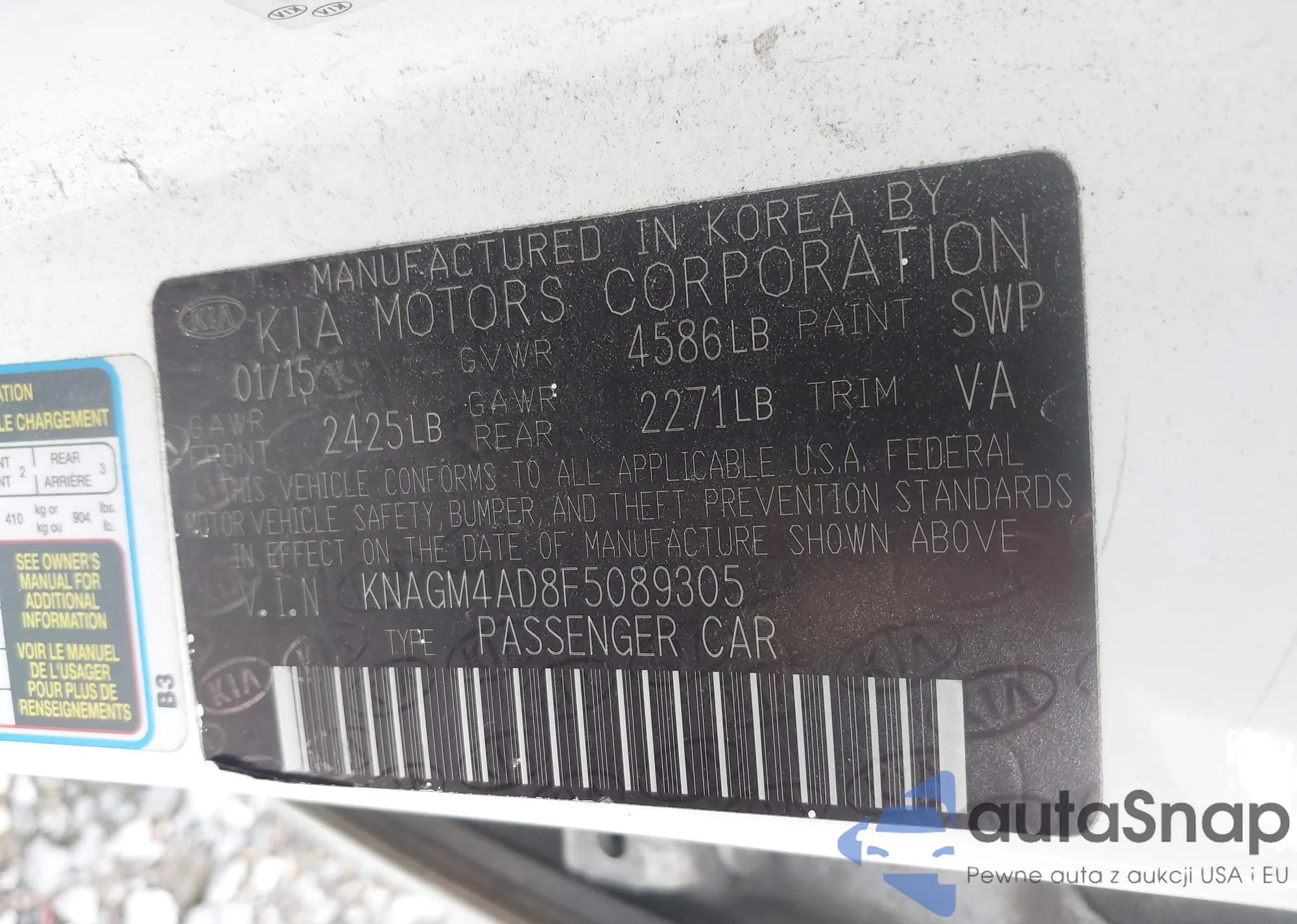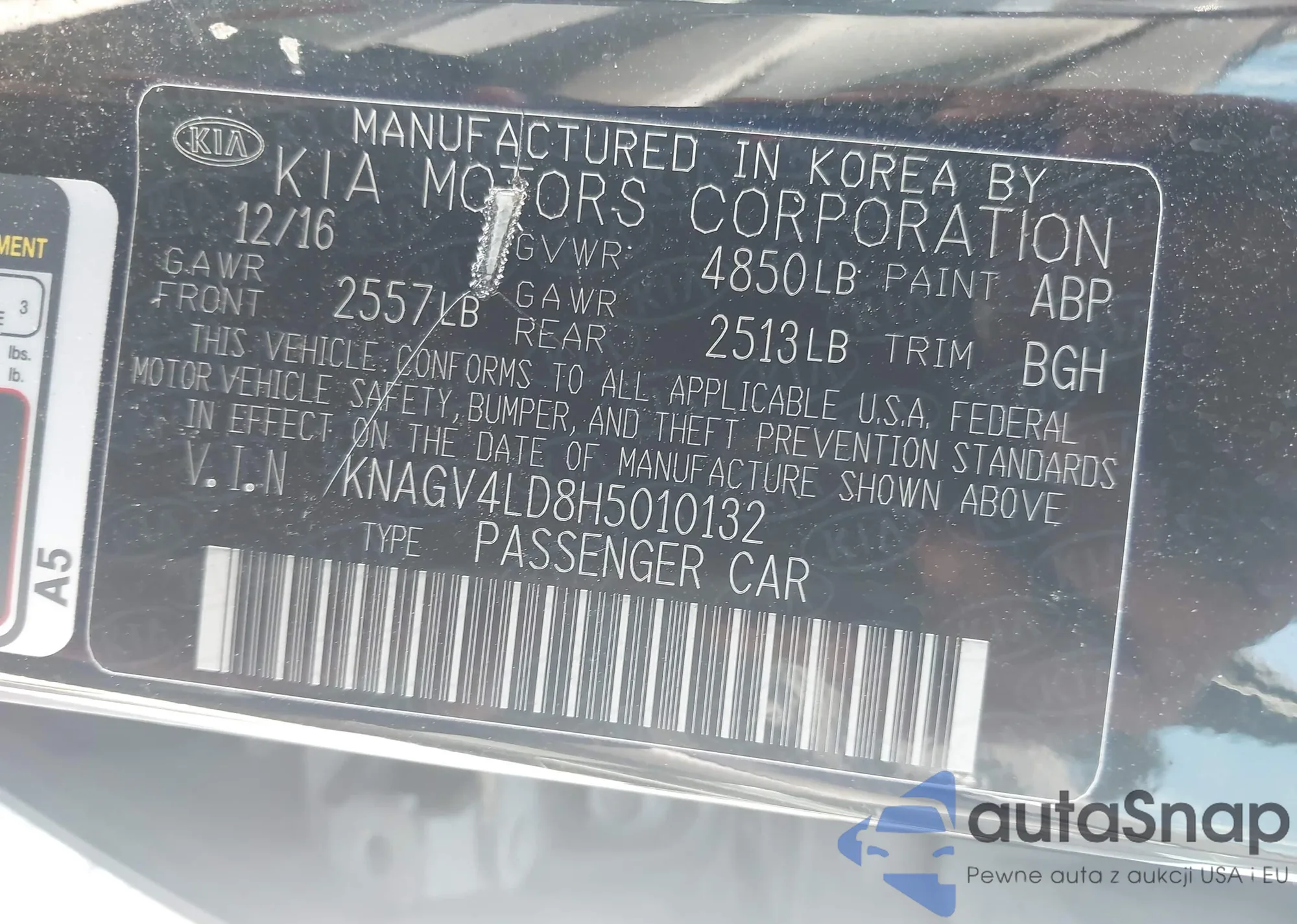 LOT: 43322229 VIN: KNAGV4LD8H5010132