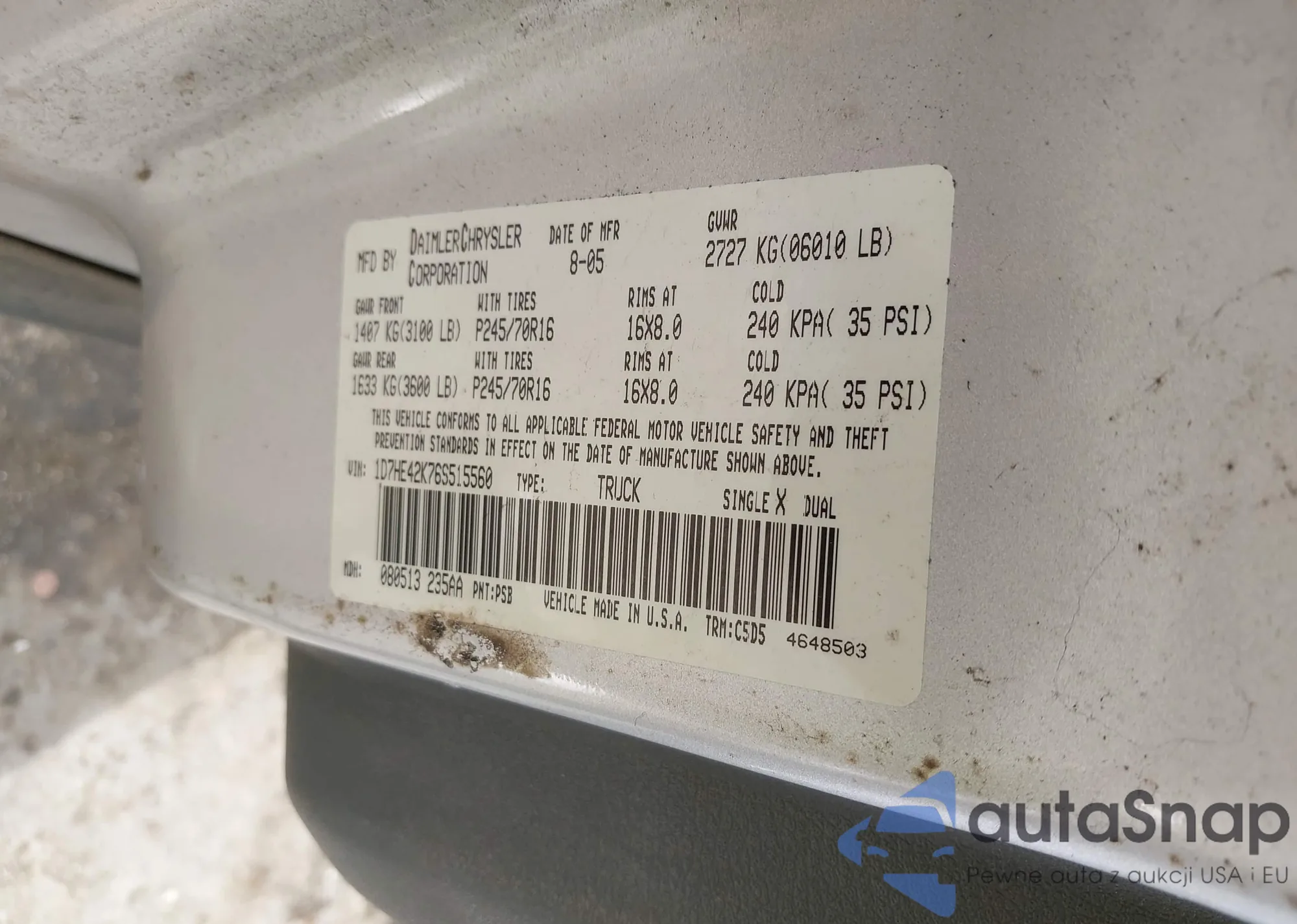 • VIN 1D7HE42K76S515560