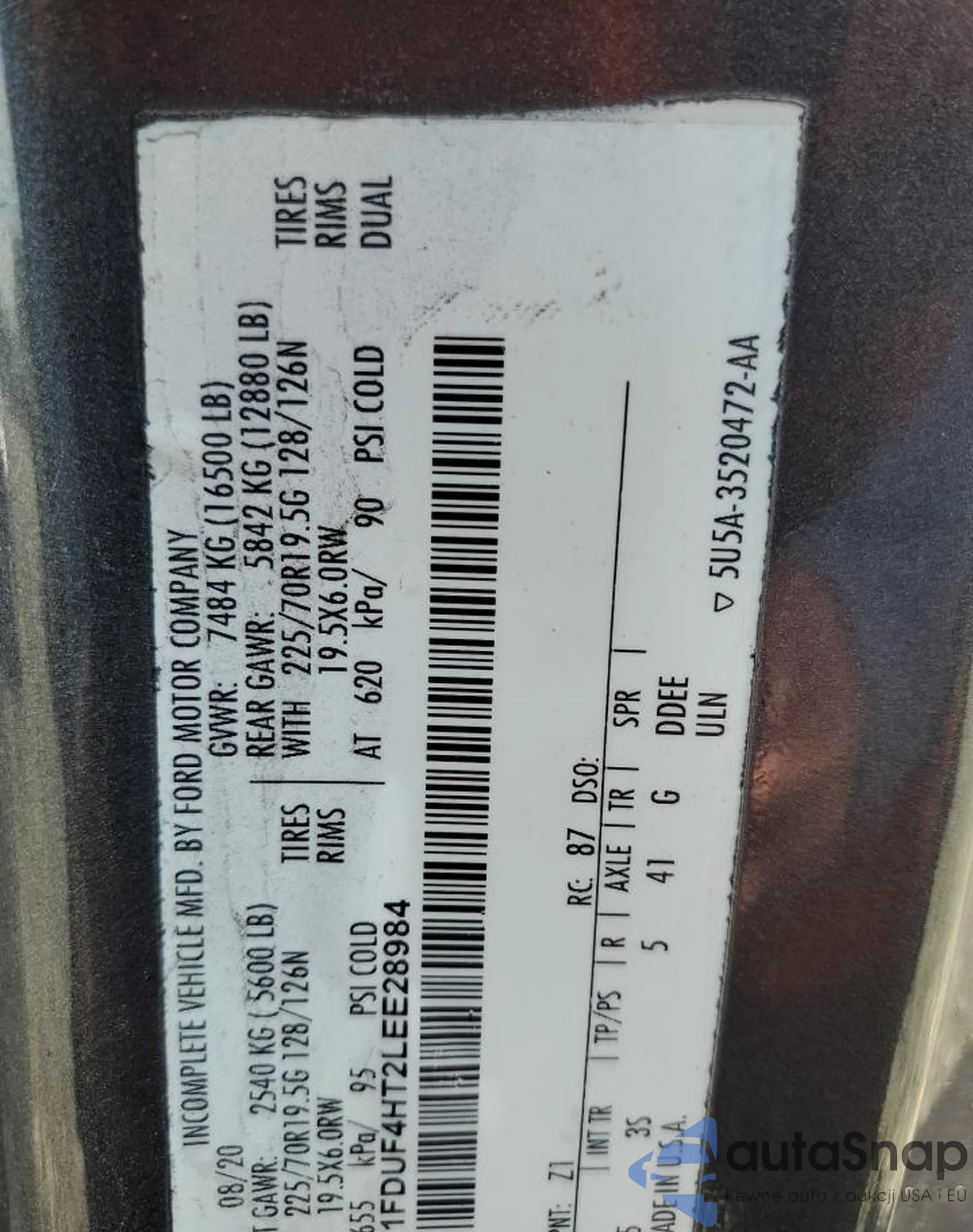 LOT: 68244375 VIN: 1FDUF4HT2LEE28984