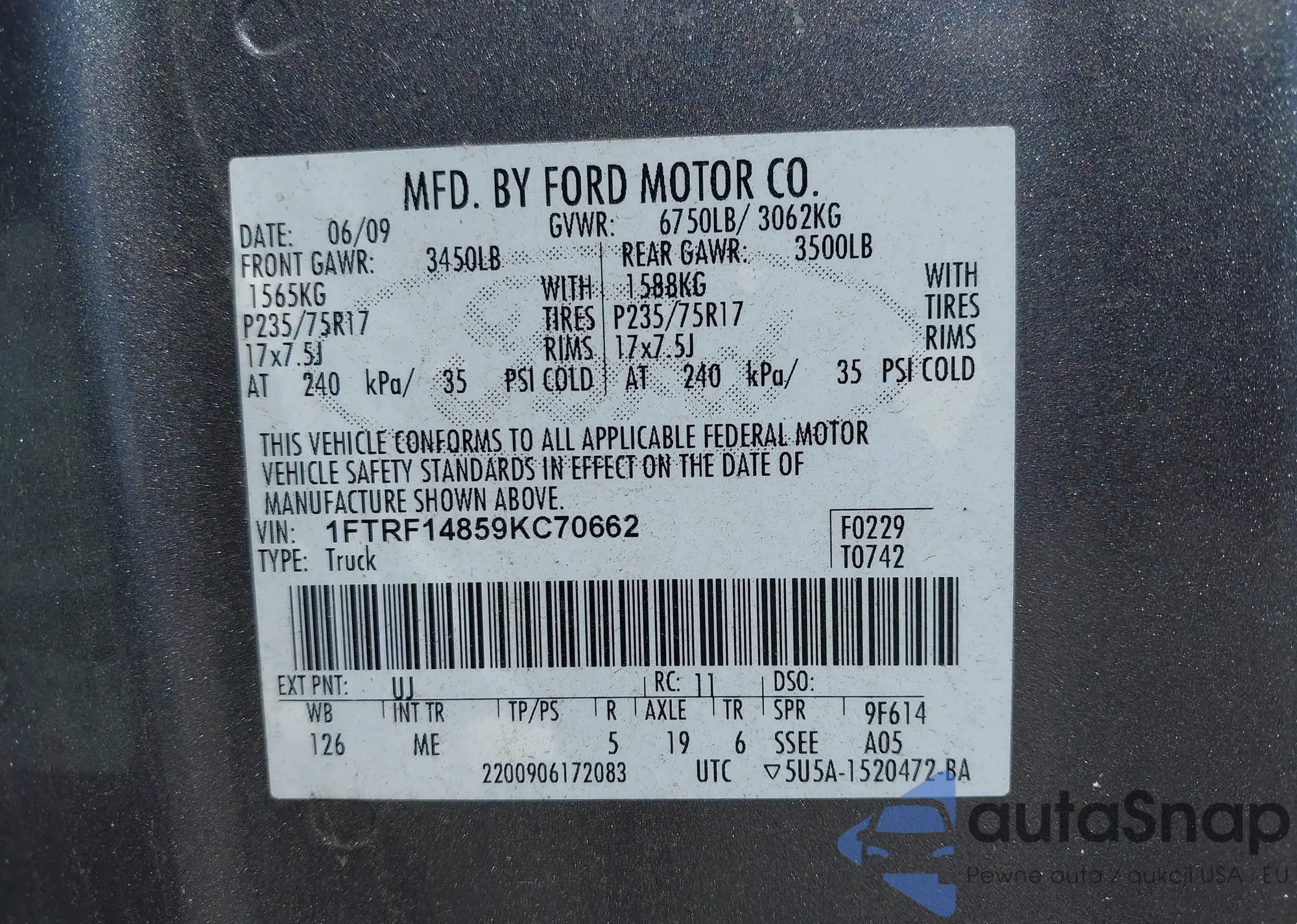 LOT: 42792096 VIN: 1ZVBP8FF9D5242869