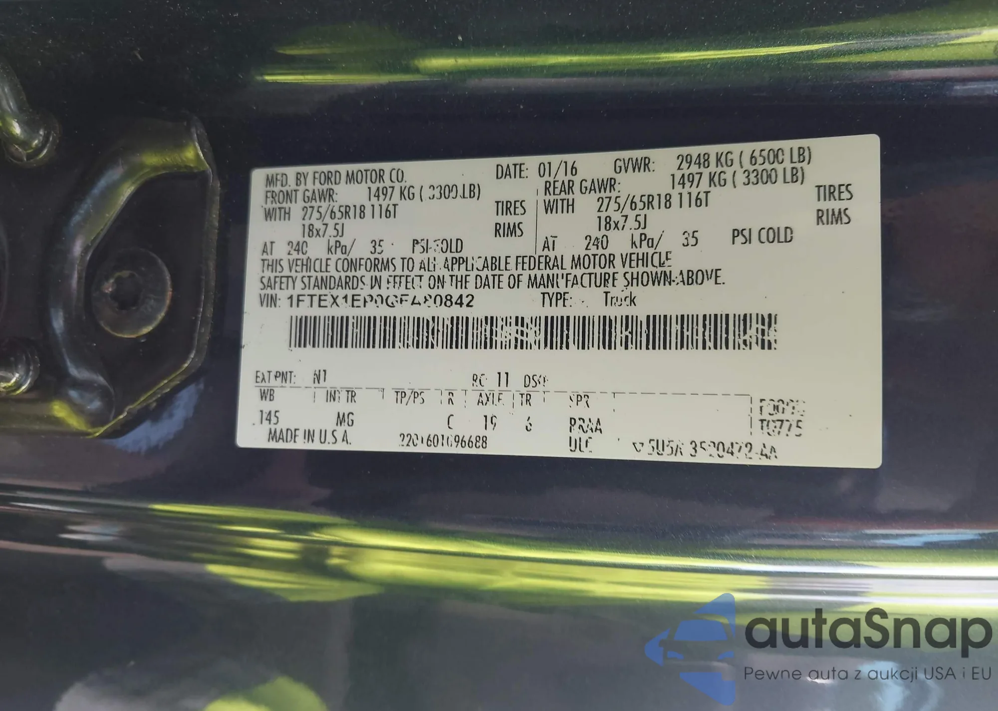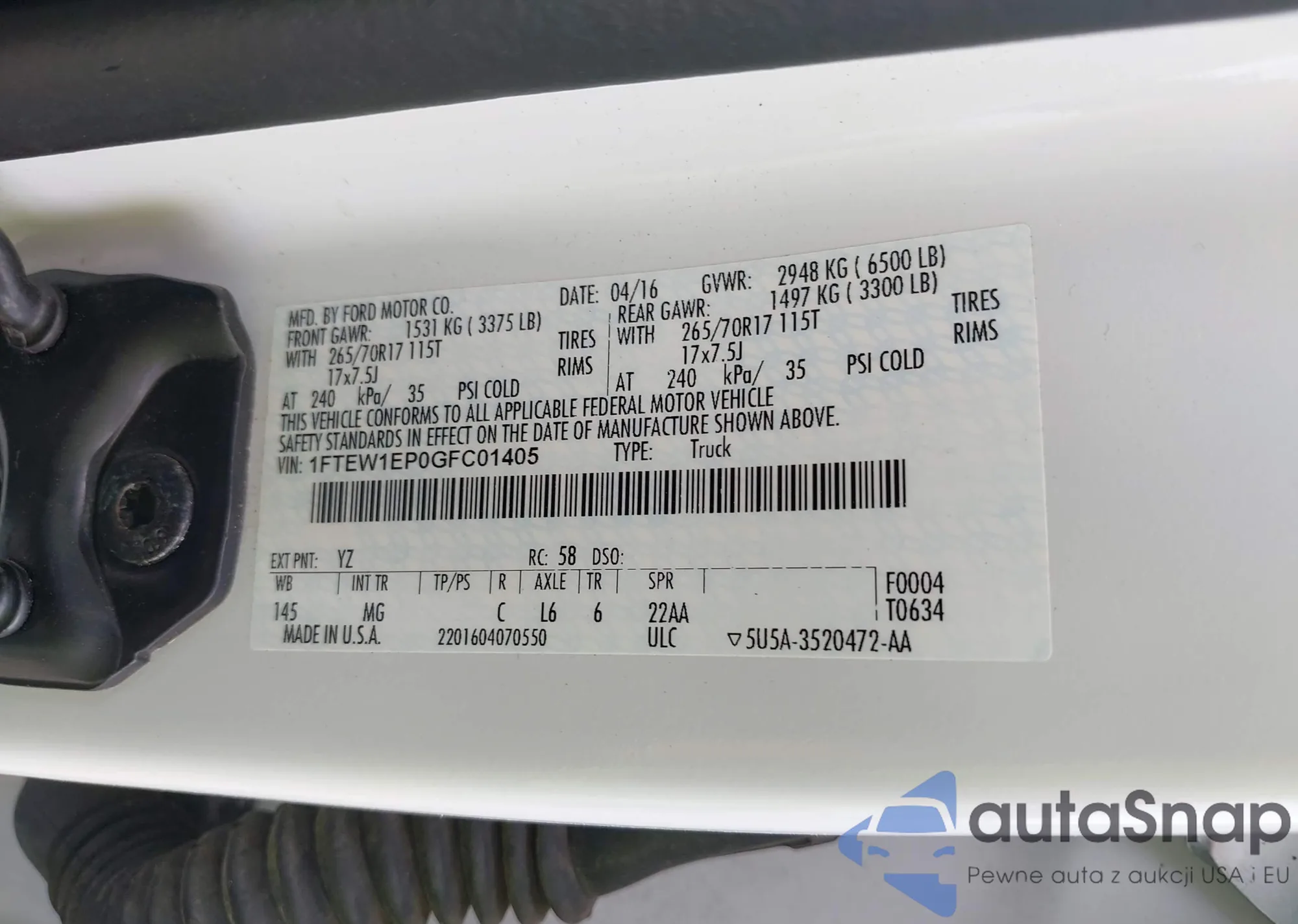 LOT: 42935780 VIN: 1FTEW1EP0GFC01405