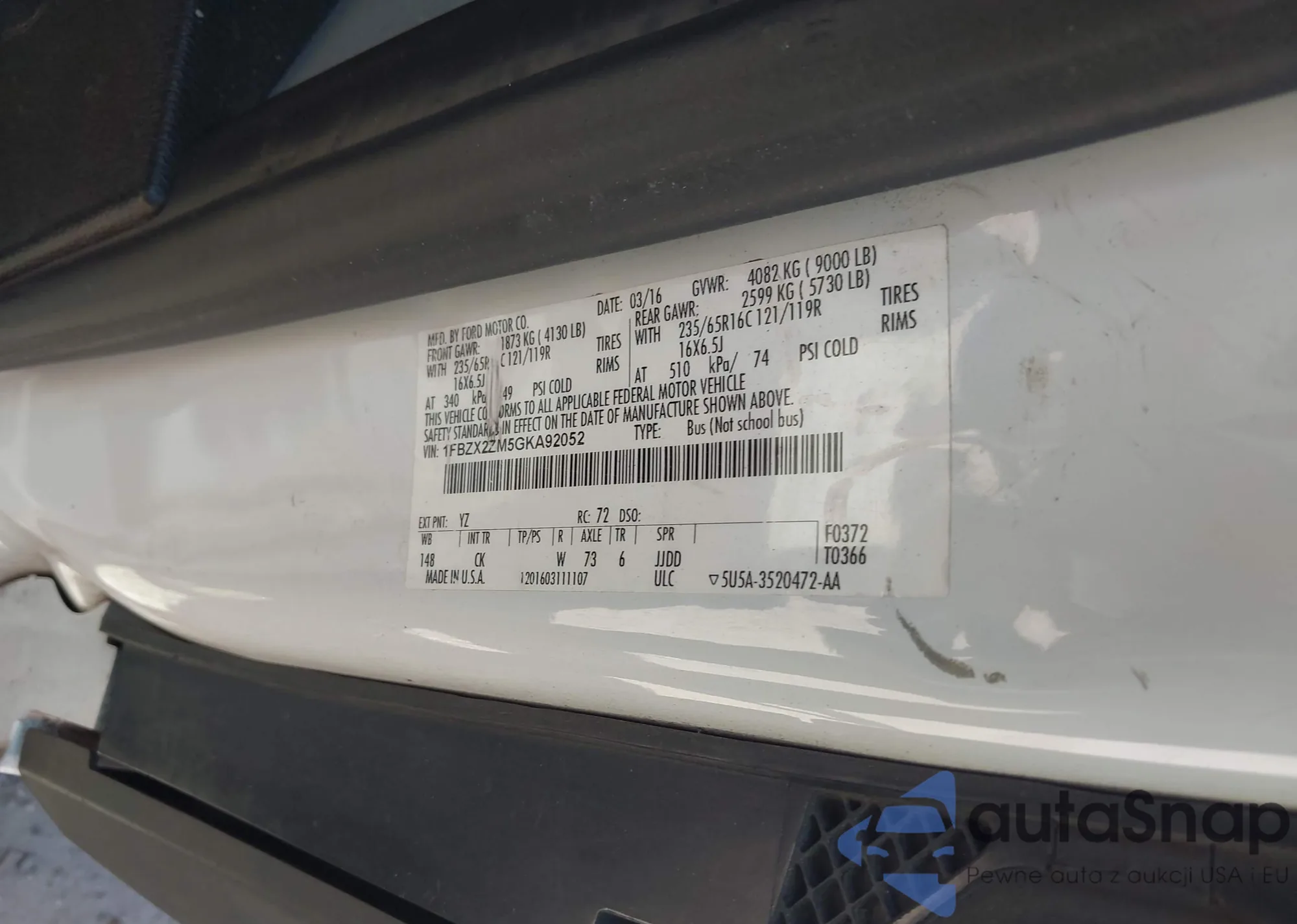 • VIN 1FBZX2ZM5GKA92052