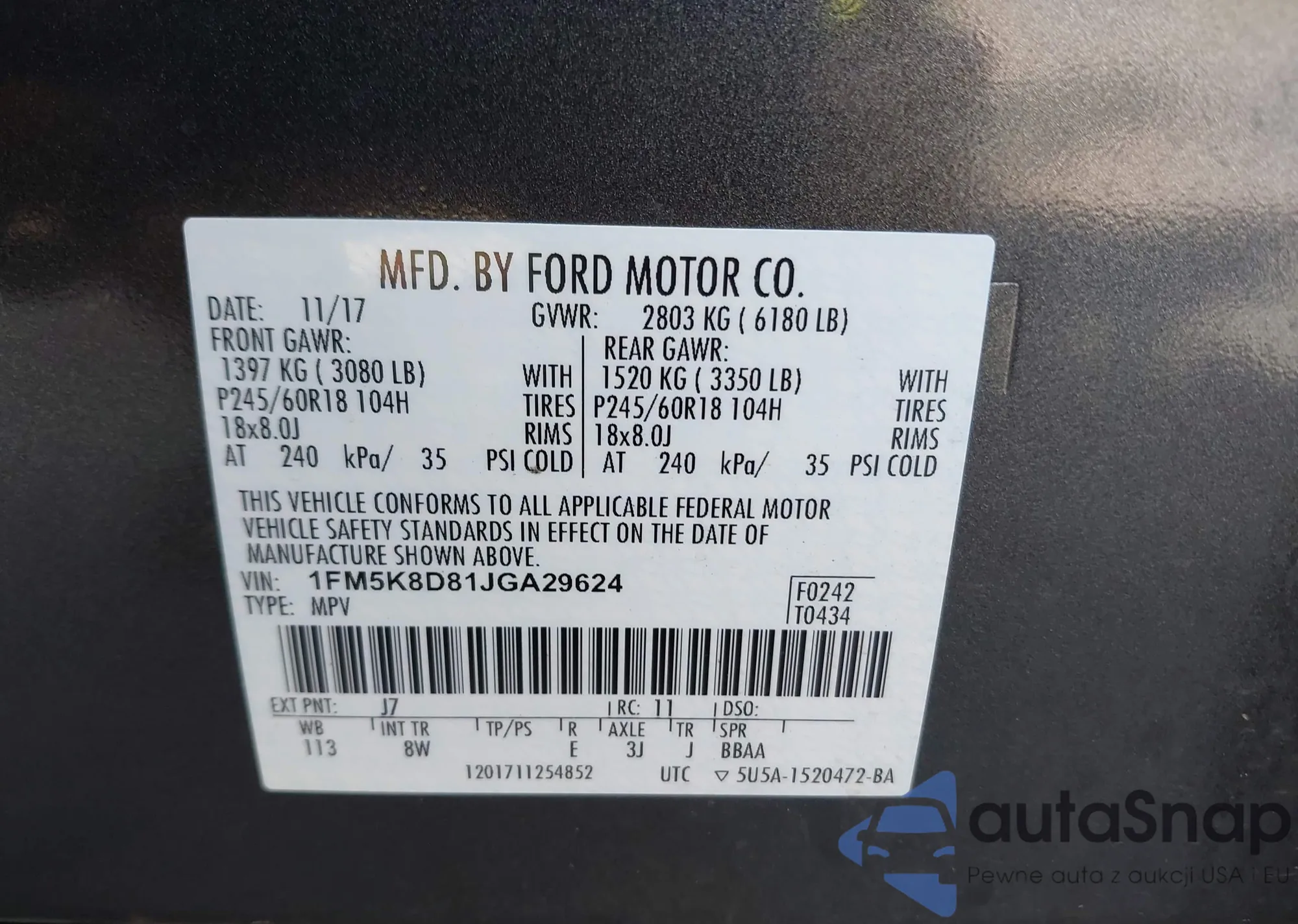 • VIN 1FMSK8DH5LGA88083