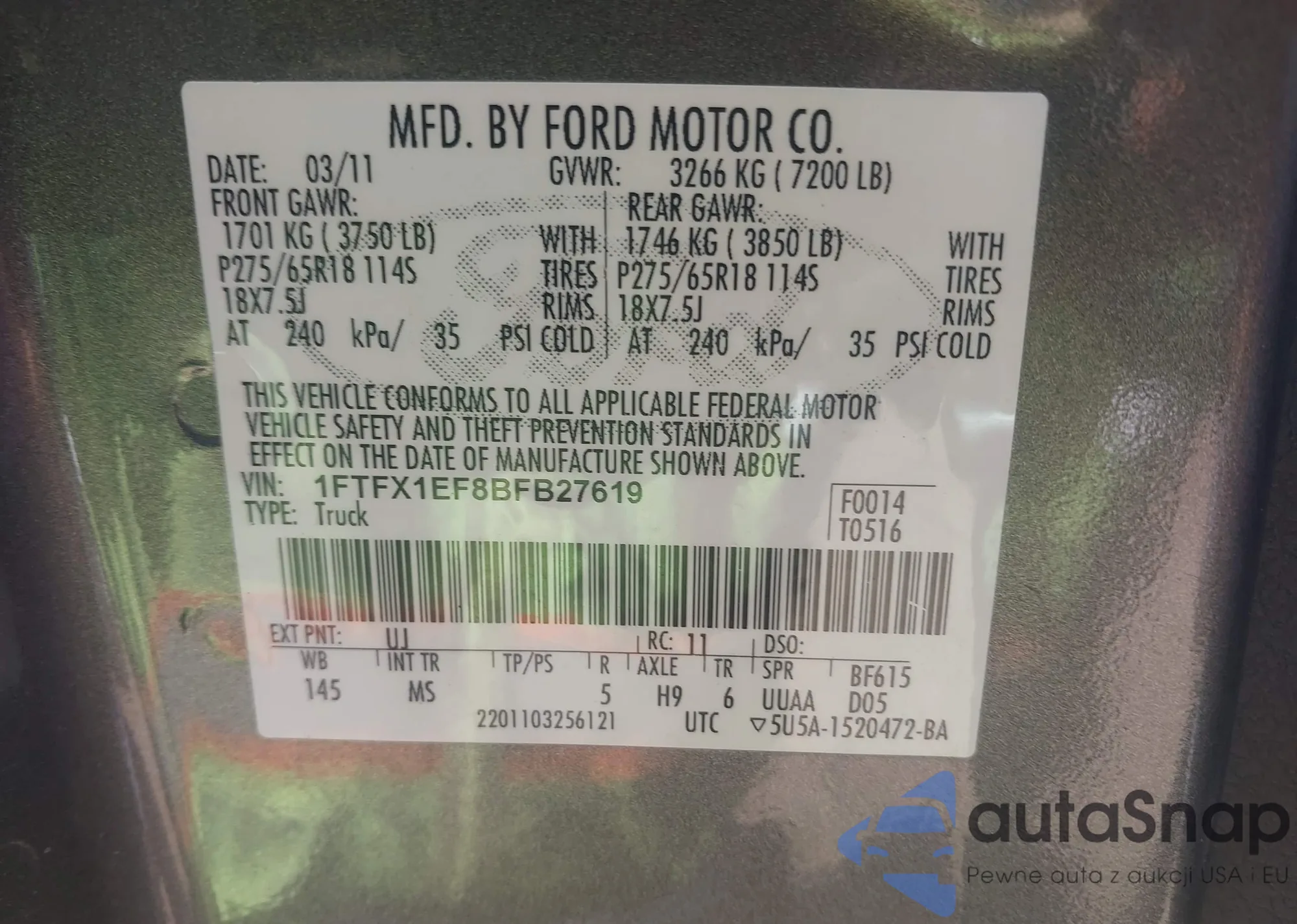 • VIN 1FTFX1EF8BFB27619