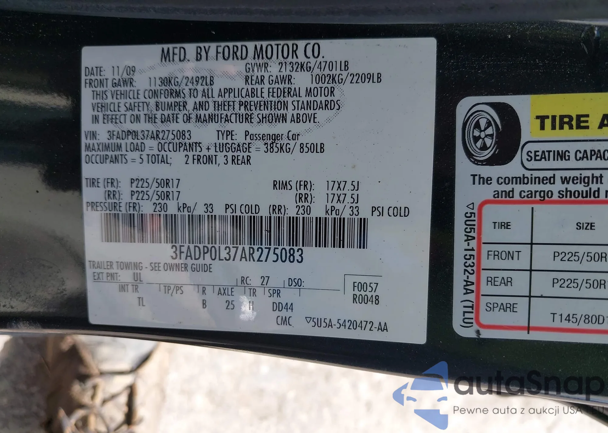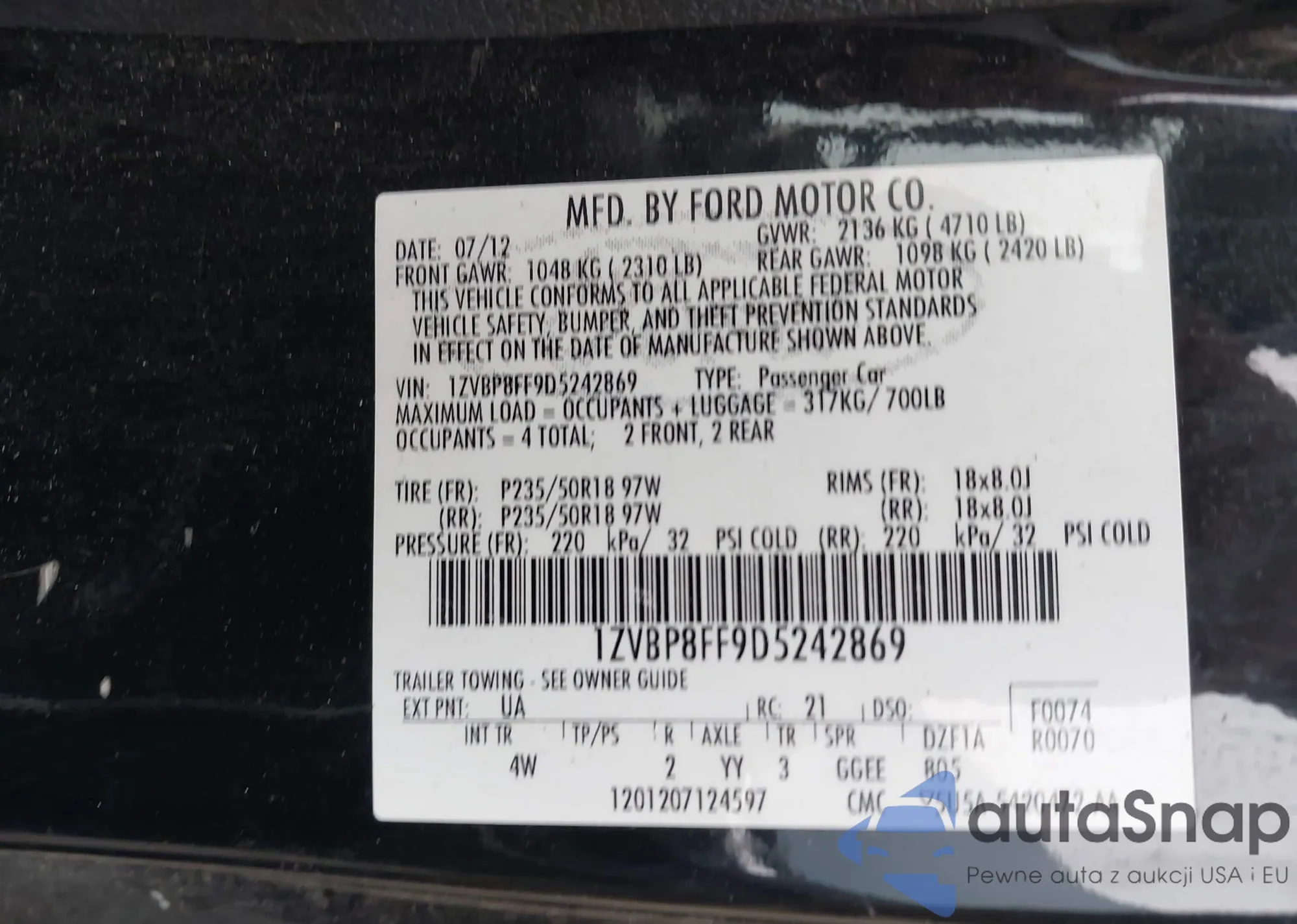 • VIN 1ZVBP8FF9D5242869